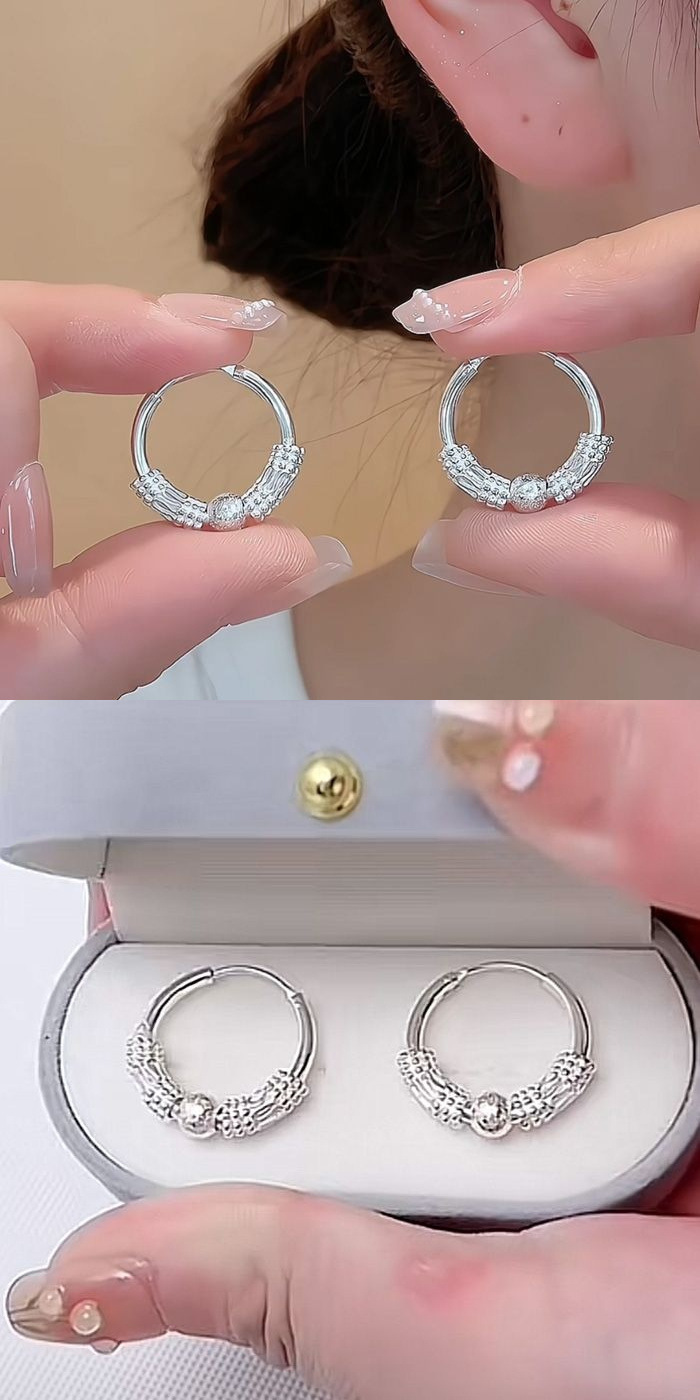 本物のオールシルバー 9999 シルバーイヤリング、女性用スターリングシルバーイヤリング、女性用トランスファービーズサークル気質イヤリング、母親用