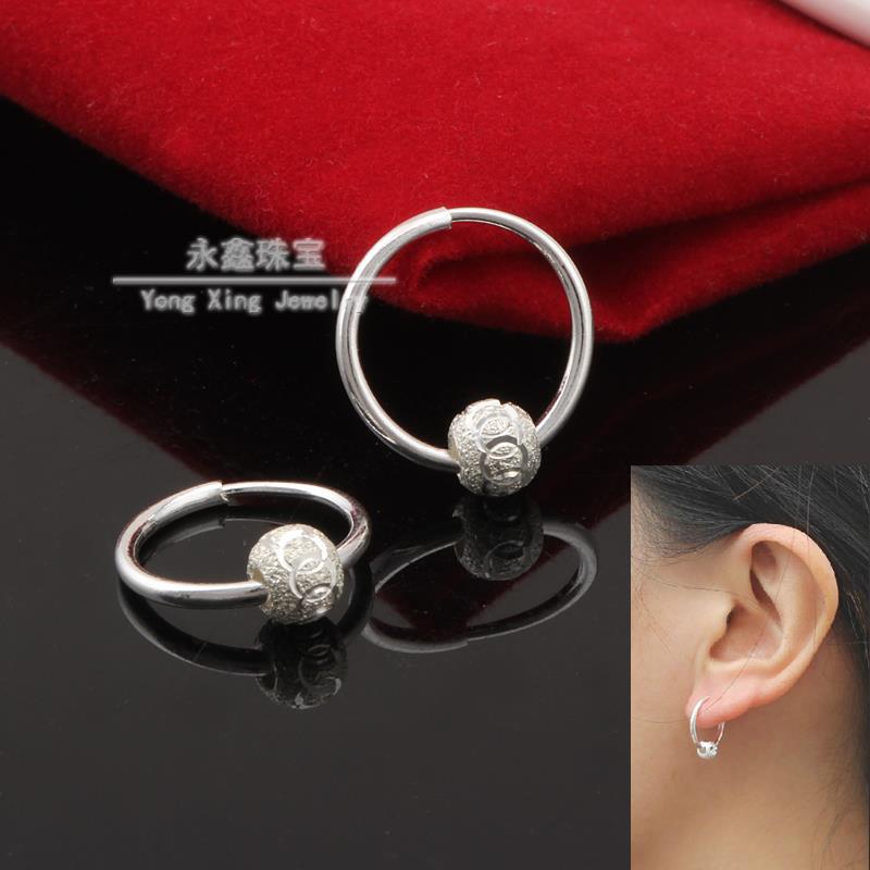 正宗全银通体足银9999耳环纯银耳圈女款转运珠圆圈气质耳饰女继灿