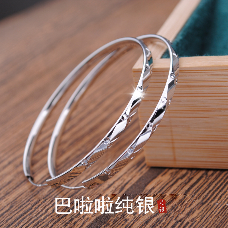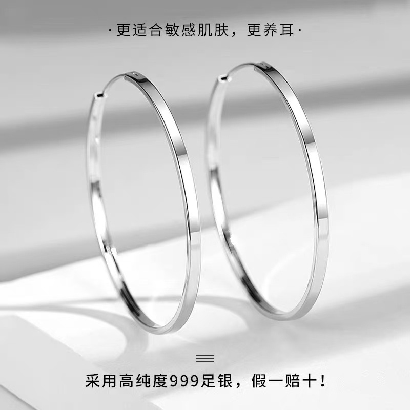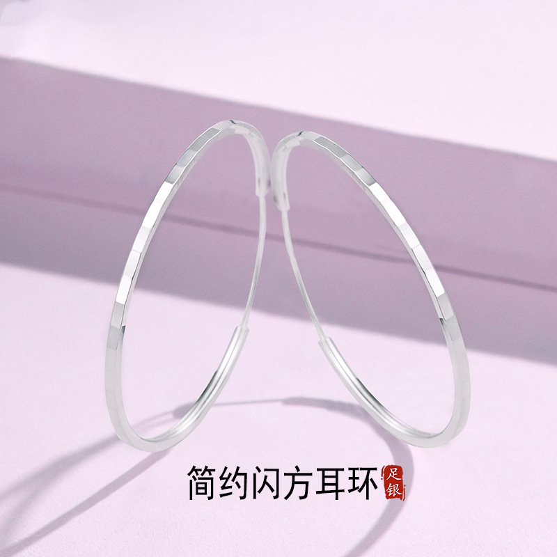 S999純銀シンプル星点模様リングイヤリング女性大円素リング耳ペンダント足銀耳輪耳飾り卸売り