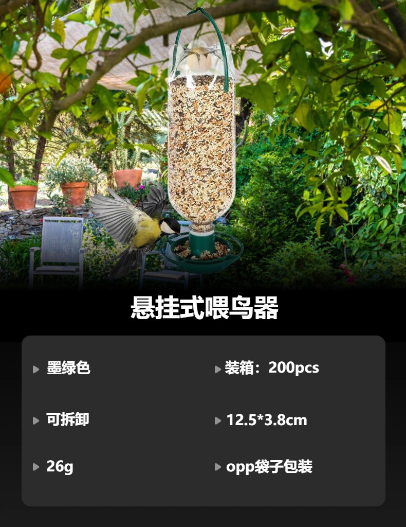 ヨーロッパとアメリカの人気の屋外鳥の餌箱プラスチック素材の取り外し可能な吊り下げ鳥の補助餌箱