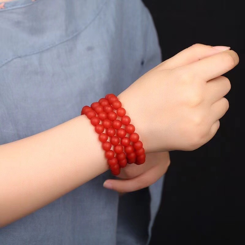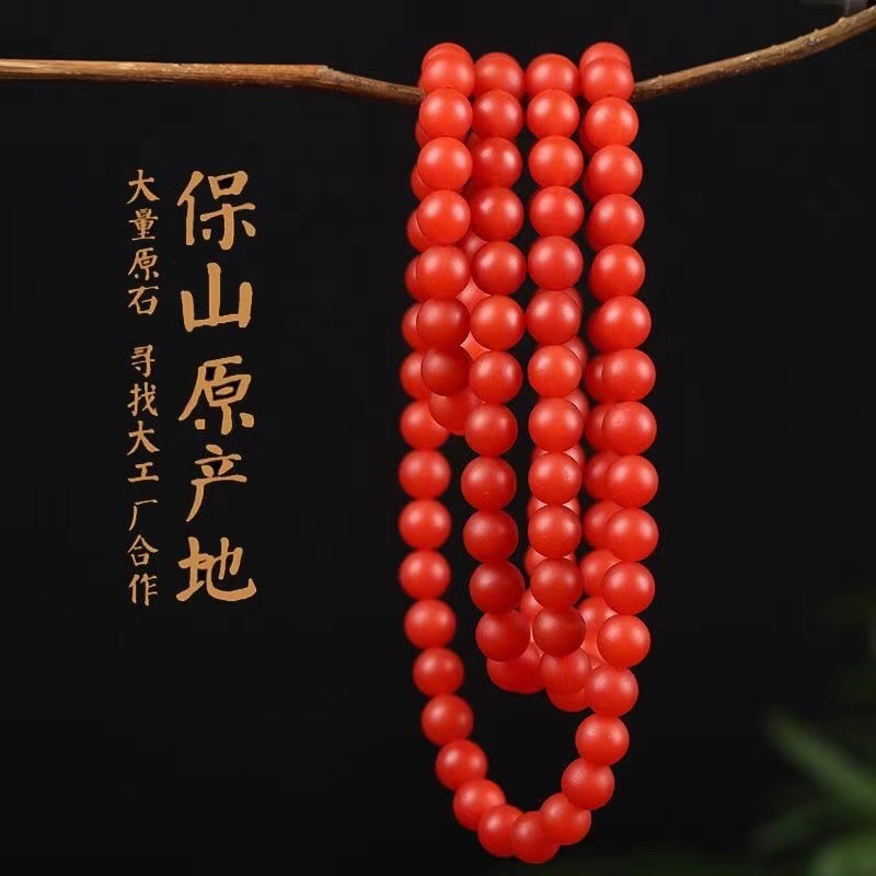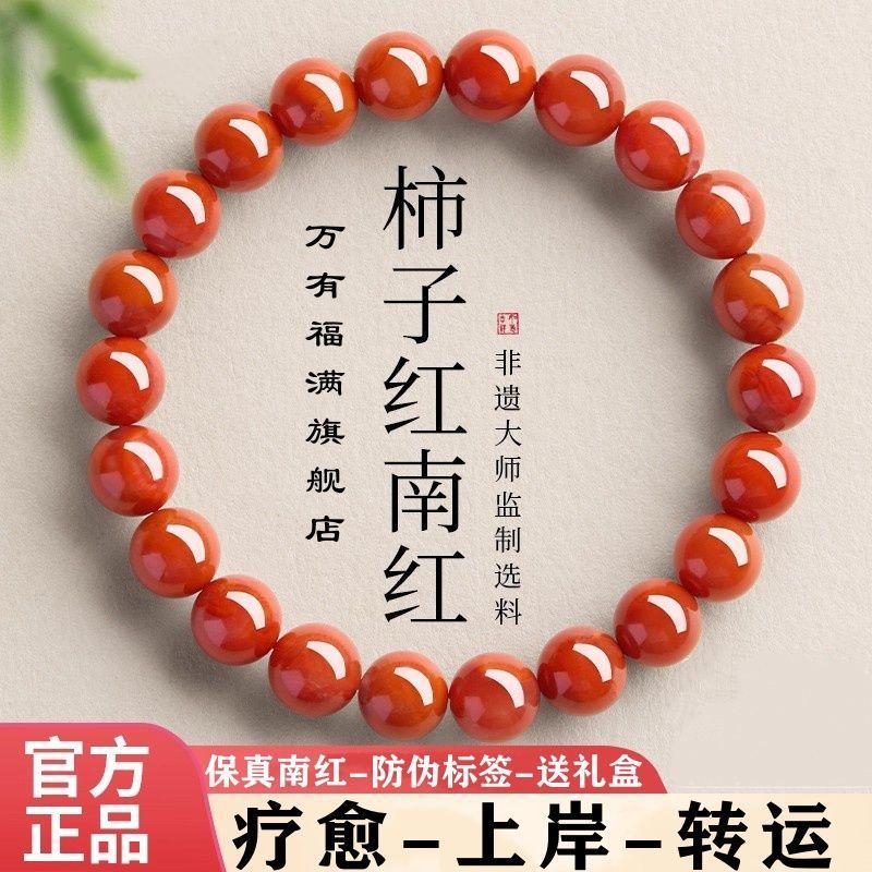 雲南保山南紅手串瑪瑙ブレスレット天然正統宝山仏珠柿紅輪満肉男女モデル