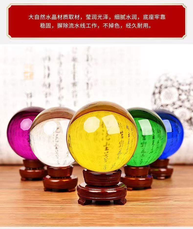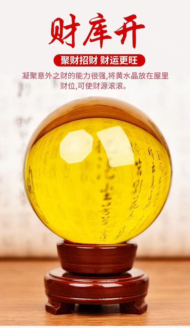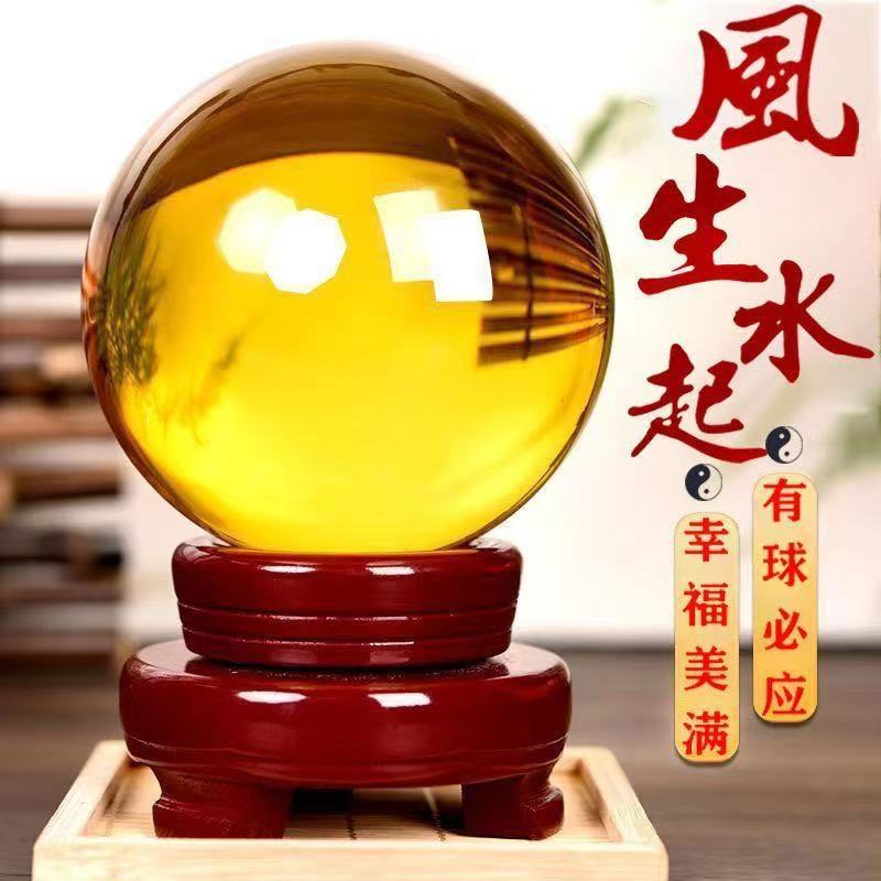 工厂批发黄色水晶球水晶摆件招财风水摆件婚礼办公室玄关拍照道具