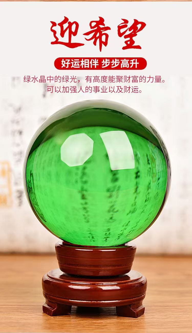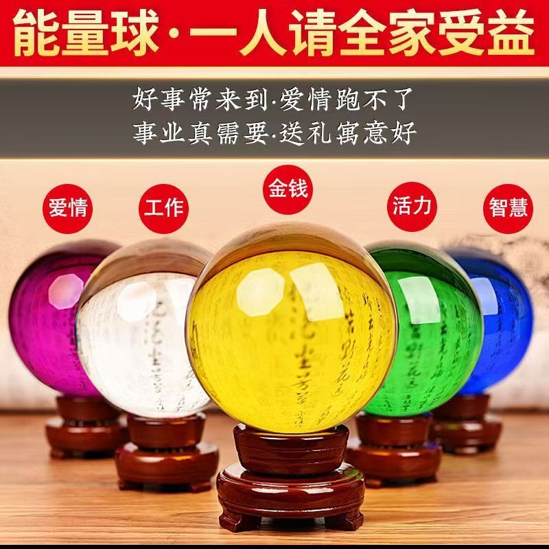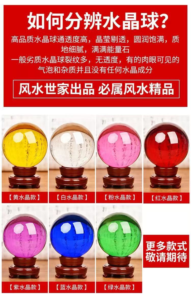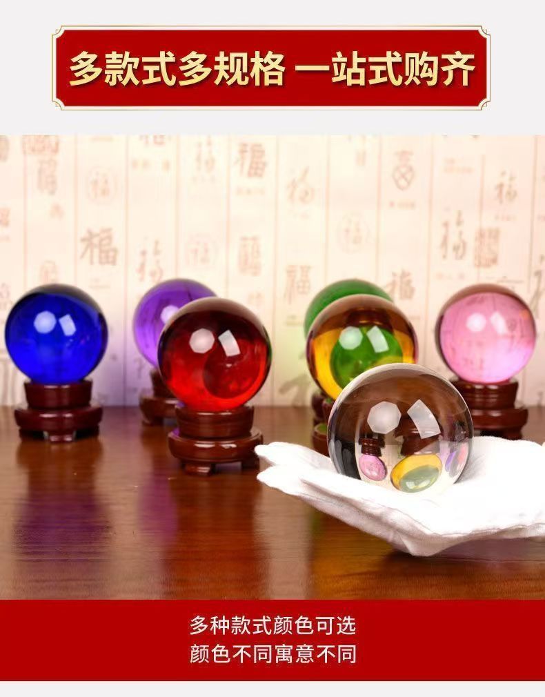 厂家批发黄色水晶球摆件白蓝绿紫红粉玻璃球底座可旋转玄关卧室客