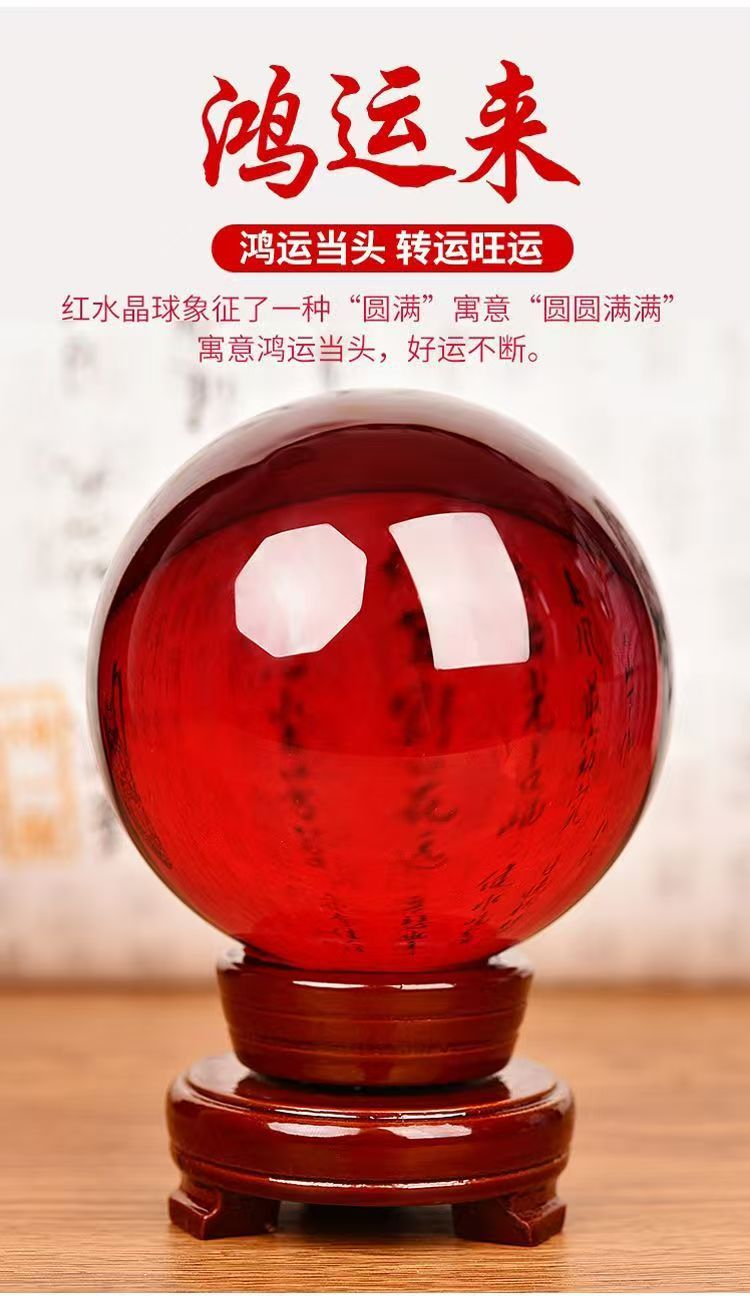 メーカー卸売り天然赤色水晶玉置物溶錬鴻運水晶玉開業プレゼントデスク置物