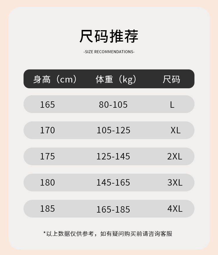 サイズ L (推奨 40-52.5kg),XL (推奨 52.5-62.5kg),2XL (推奨 62.5-72.5kg),3XL (推奨 72.5-82.5kg),4XL (推奨 82.5-92.5kg)