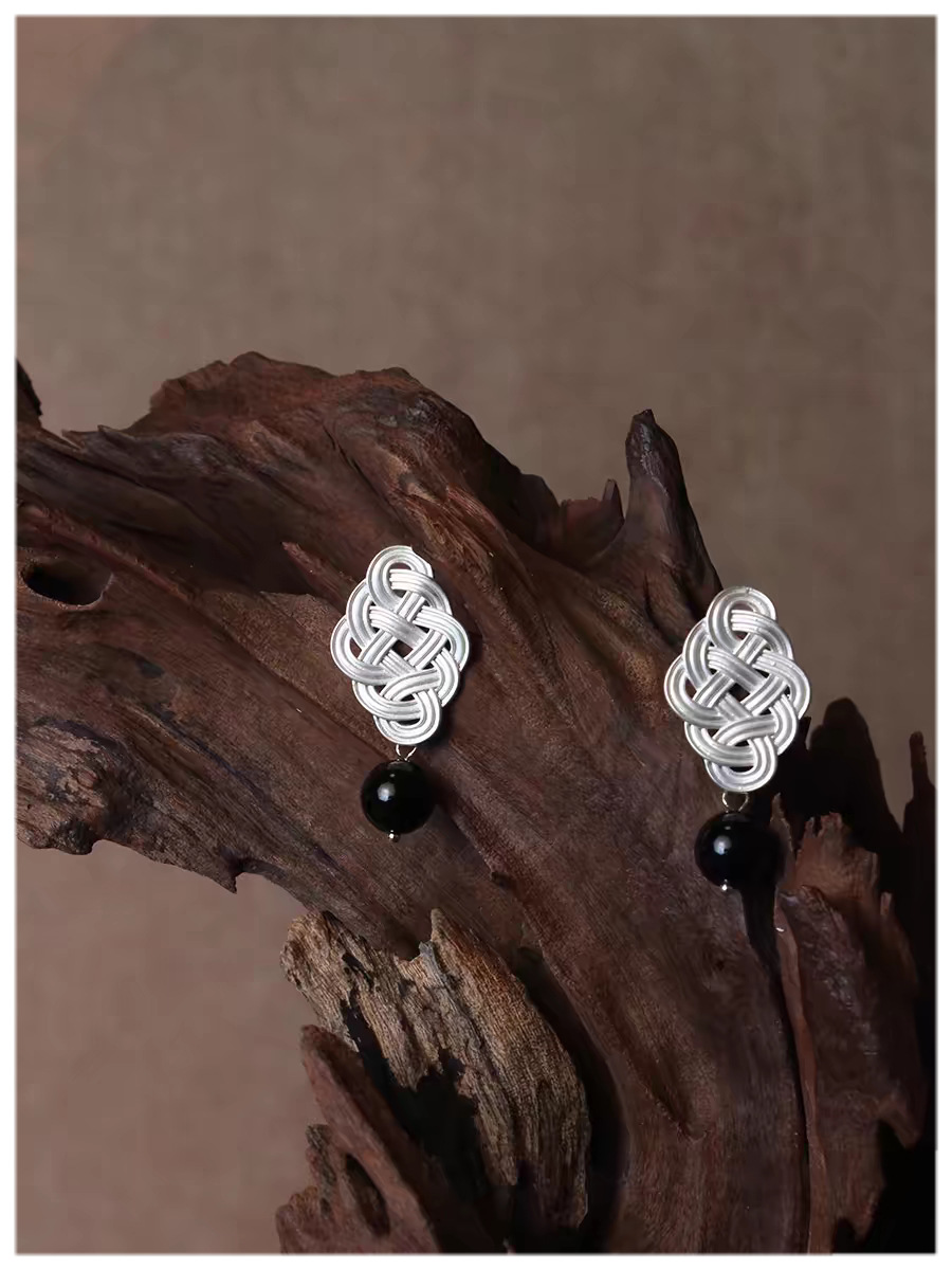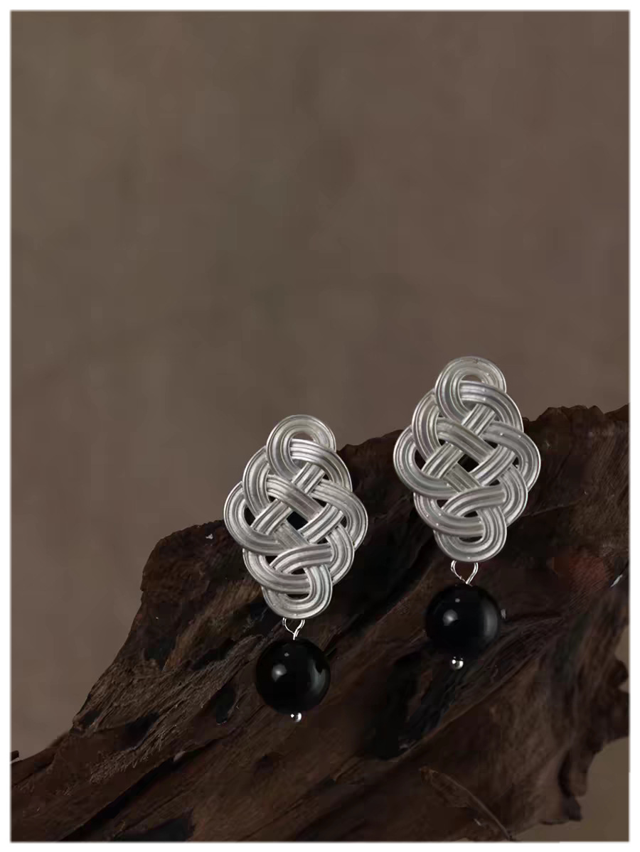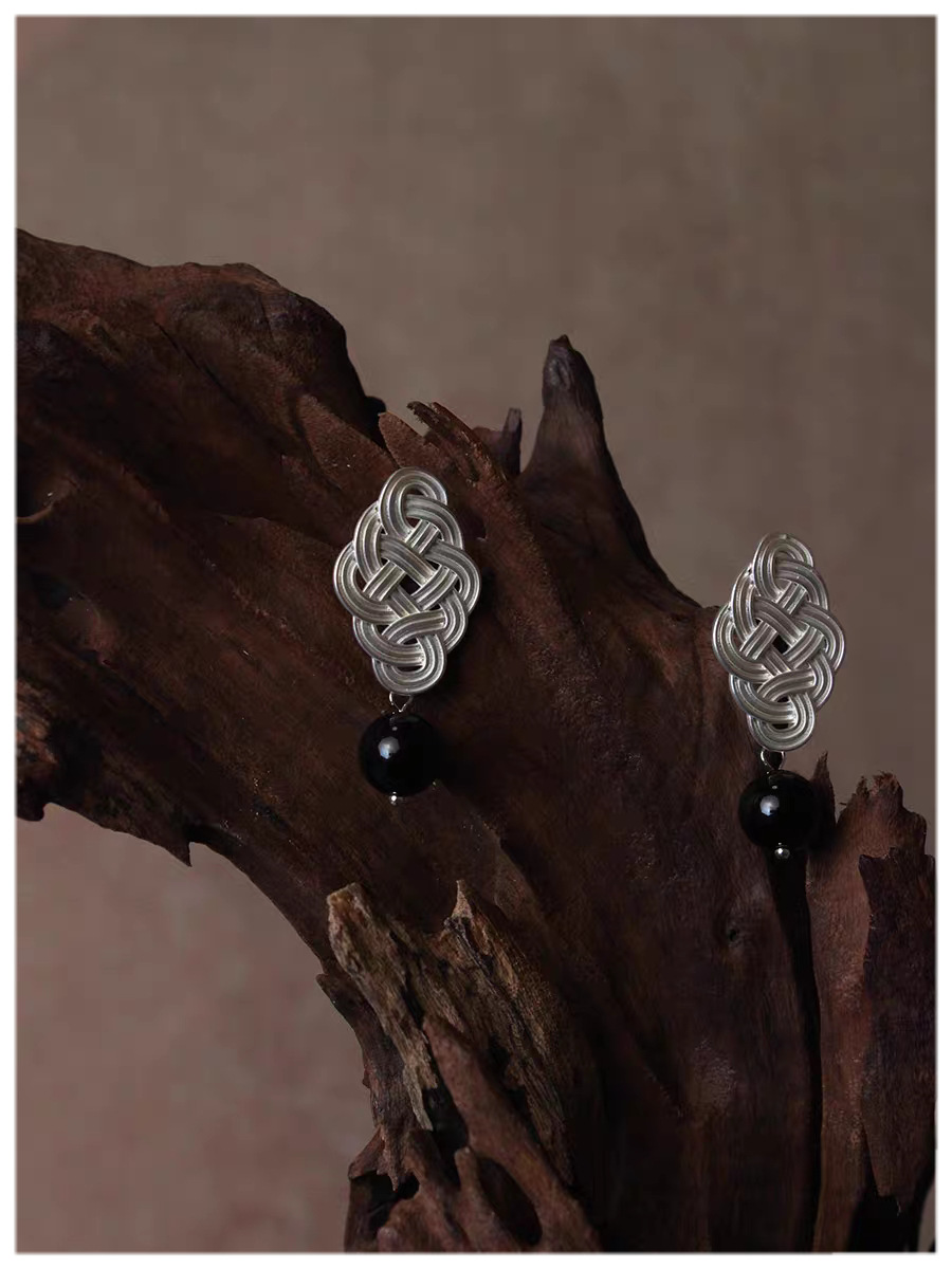 新しい中国風のハイエンド中国結び黒瑪瑙イヤリングニッチデザイナーレディースイヤリング