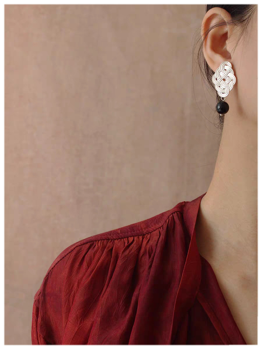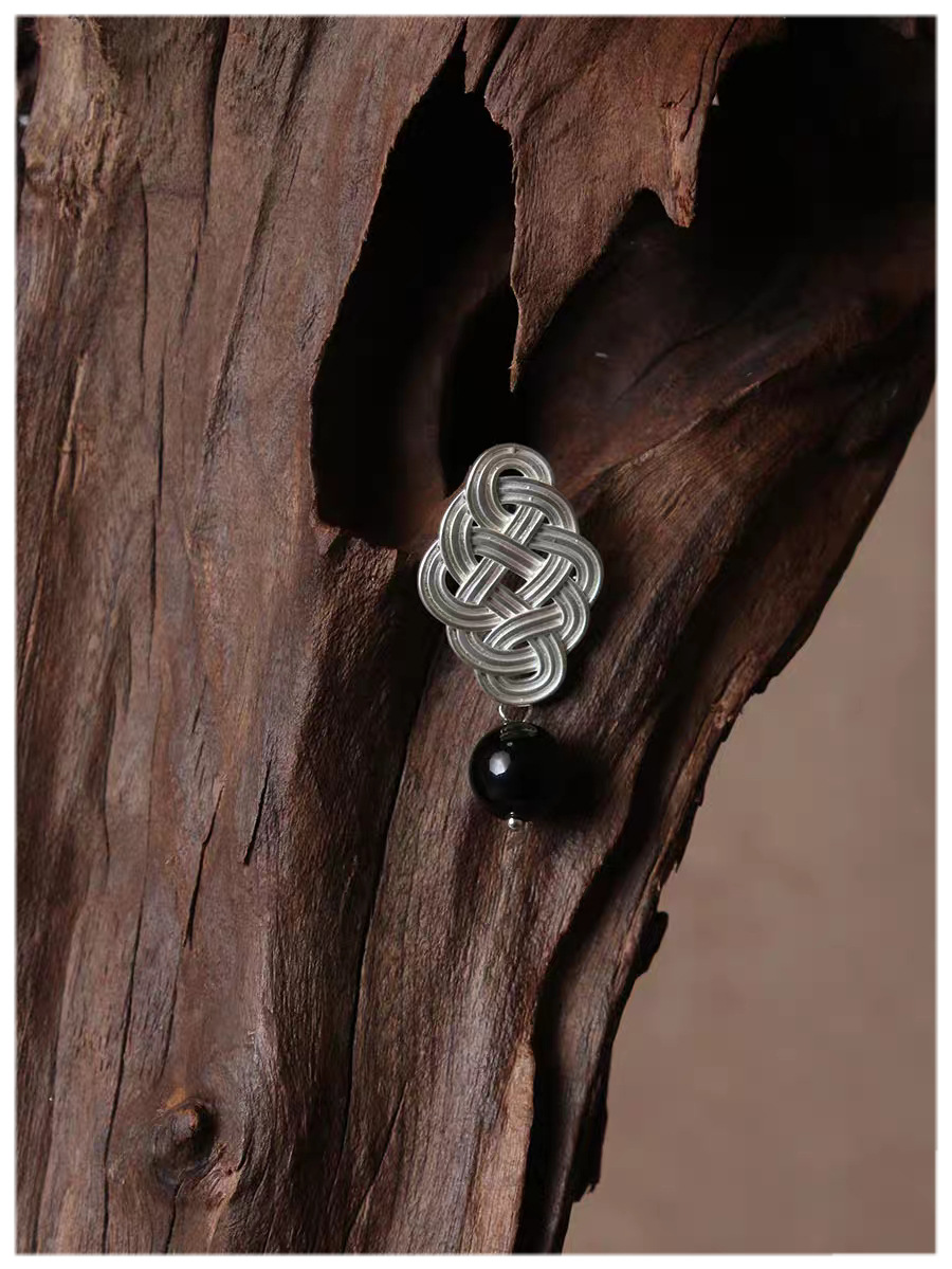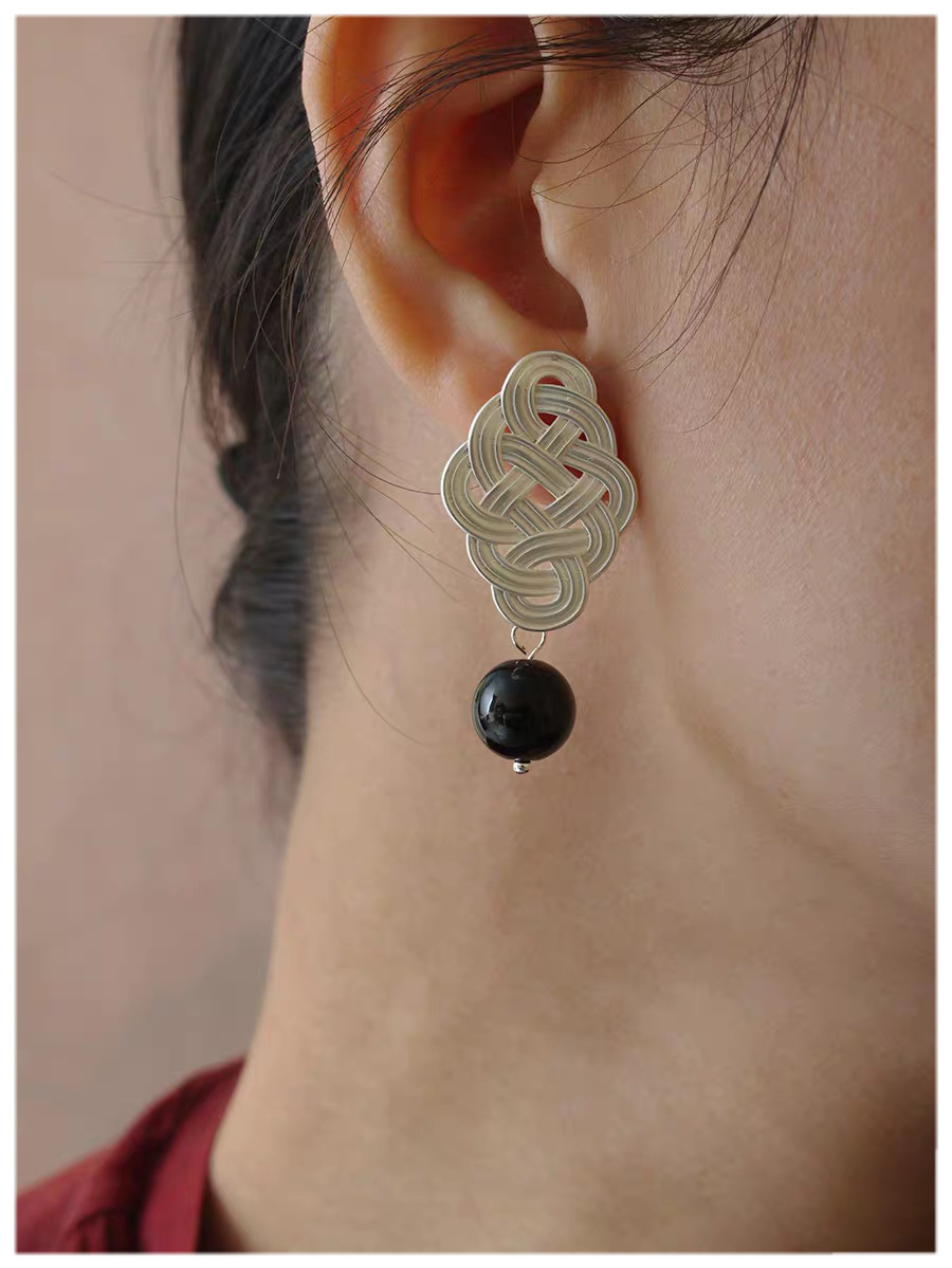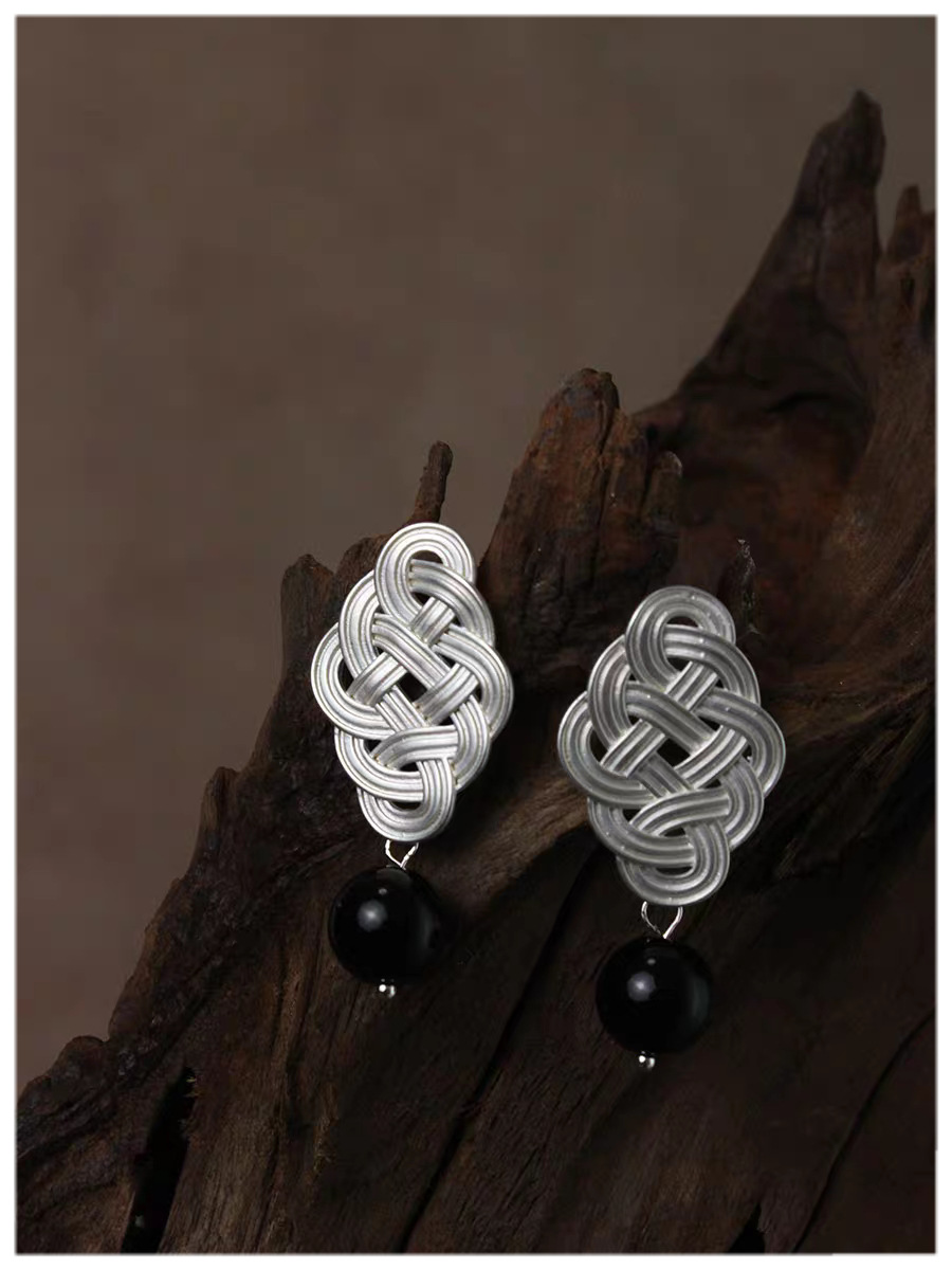 新しい中国風のハイエンド中国結び黒瑪瑙イヤリングニッチデザイナーレディースイヤリング