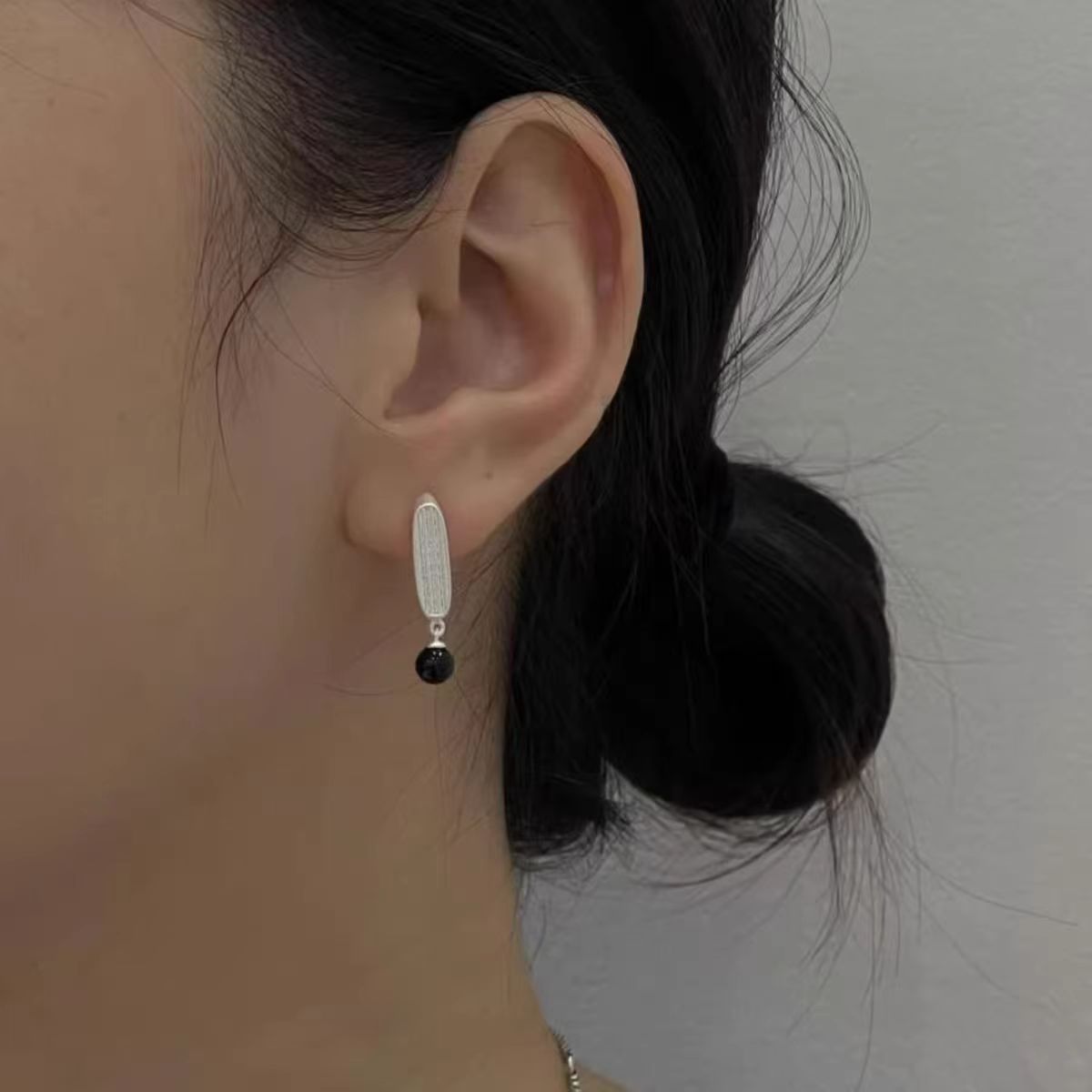 新款豆豆同款耳钉女黑玛瑙耳环冬季高级感简约百搭小众耳坠耳饰