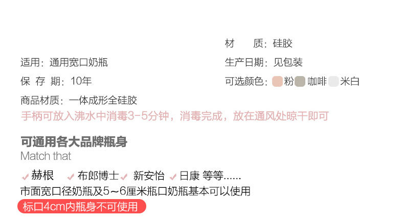 适配赫根奶瓶配件硅胶pp材质宽口手柄赫根专用把手柄宝宝握把手