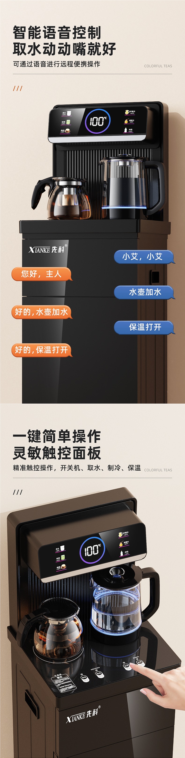 Xianke インテリジェント音声ティーバーマシン家庭用垂直下部バケツ多機能全自動ボトル入りウォーターディスペンサー