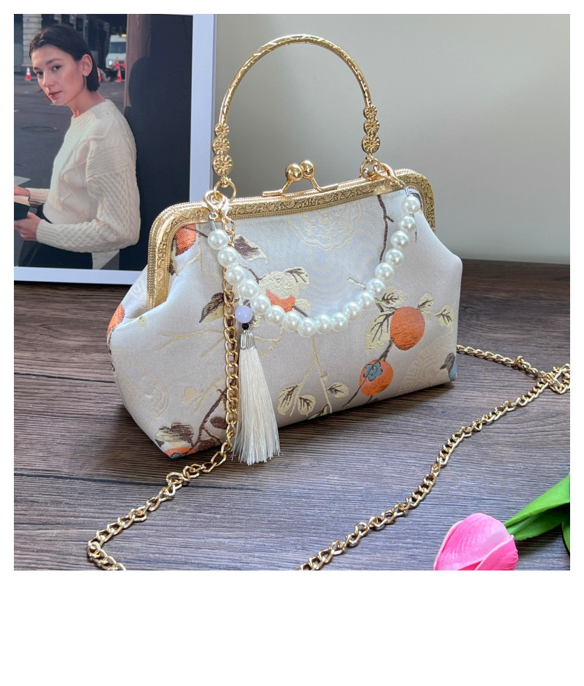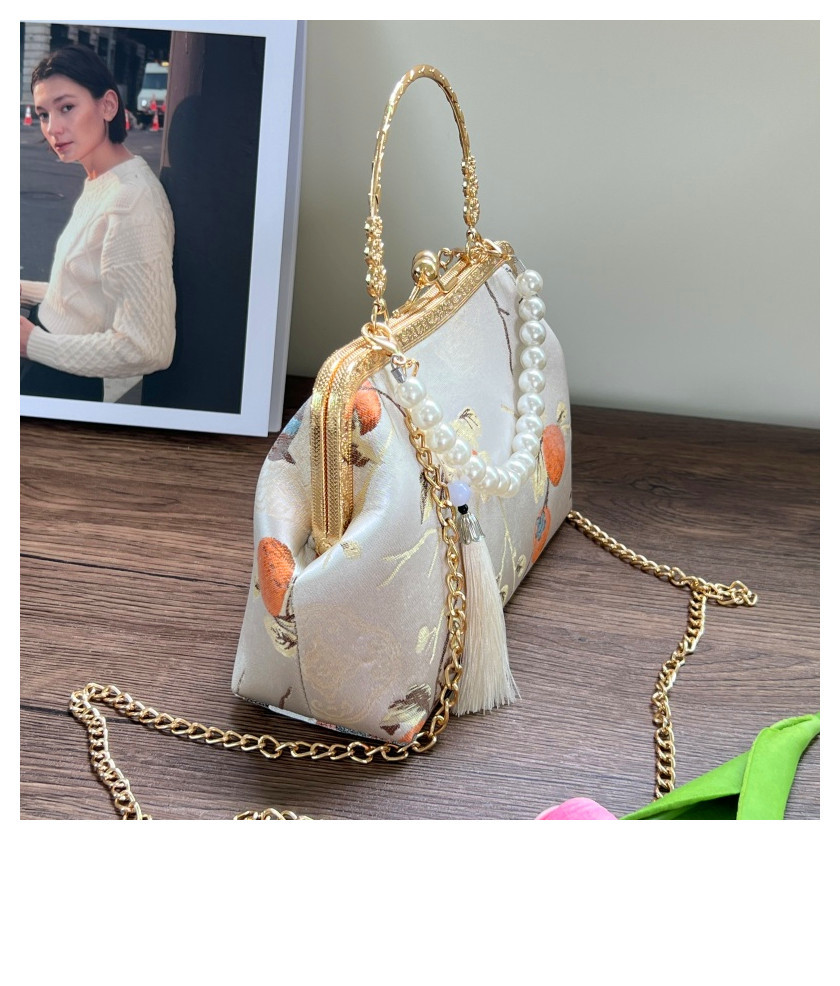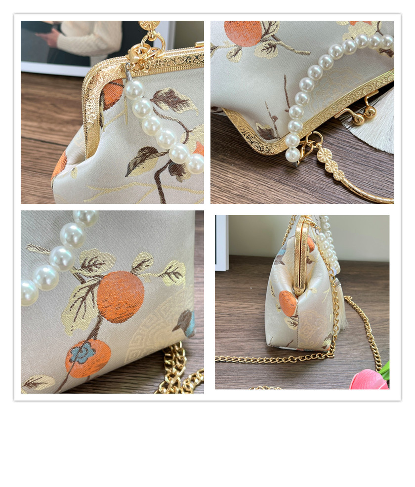 レトロな結婚バッグの新しい国風の女性バッグの口金バッグのチャイナドレスのカバンの真珠のチェーンのカバンの肩の斜め掛けの結婚披露宴のハンドバッグ