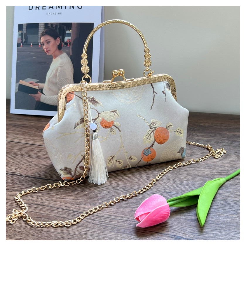 新しい中国風の漢服、中国風のチャイナドレスバッグ、古代スタイルのハンドバッグ、ゴールドバッグ、エスニックスタイルのレトロなショルダークロスボディバッグ