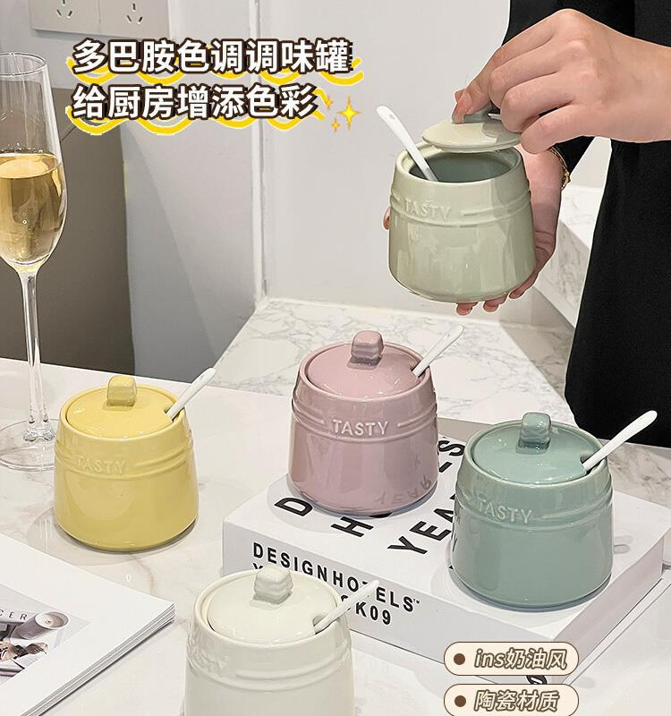 带勺陶瓷调料瓶罐厨房家用防潮调料盒油辣椒味精盐罐佐料盒高颜值