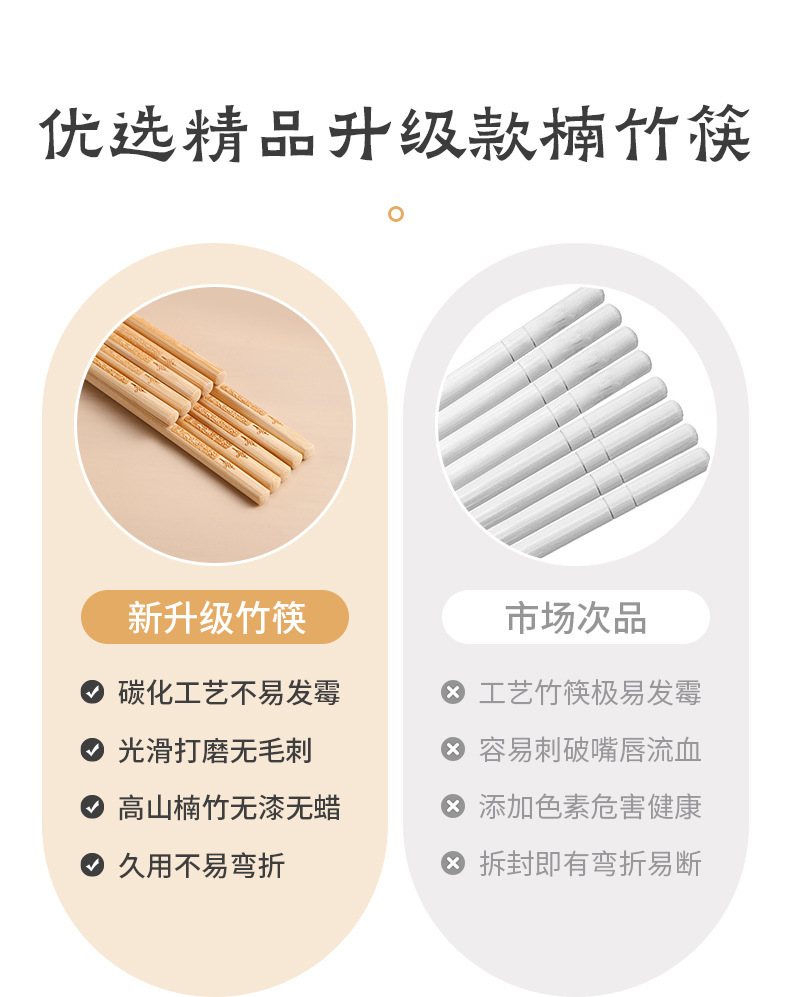 天然高山竹箸、無塗装、無ワックス、家庭用、カビが発生しにくい、新しい竹箸、木製クイズ