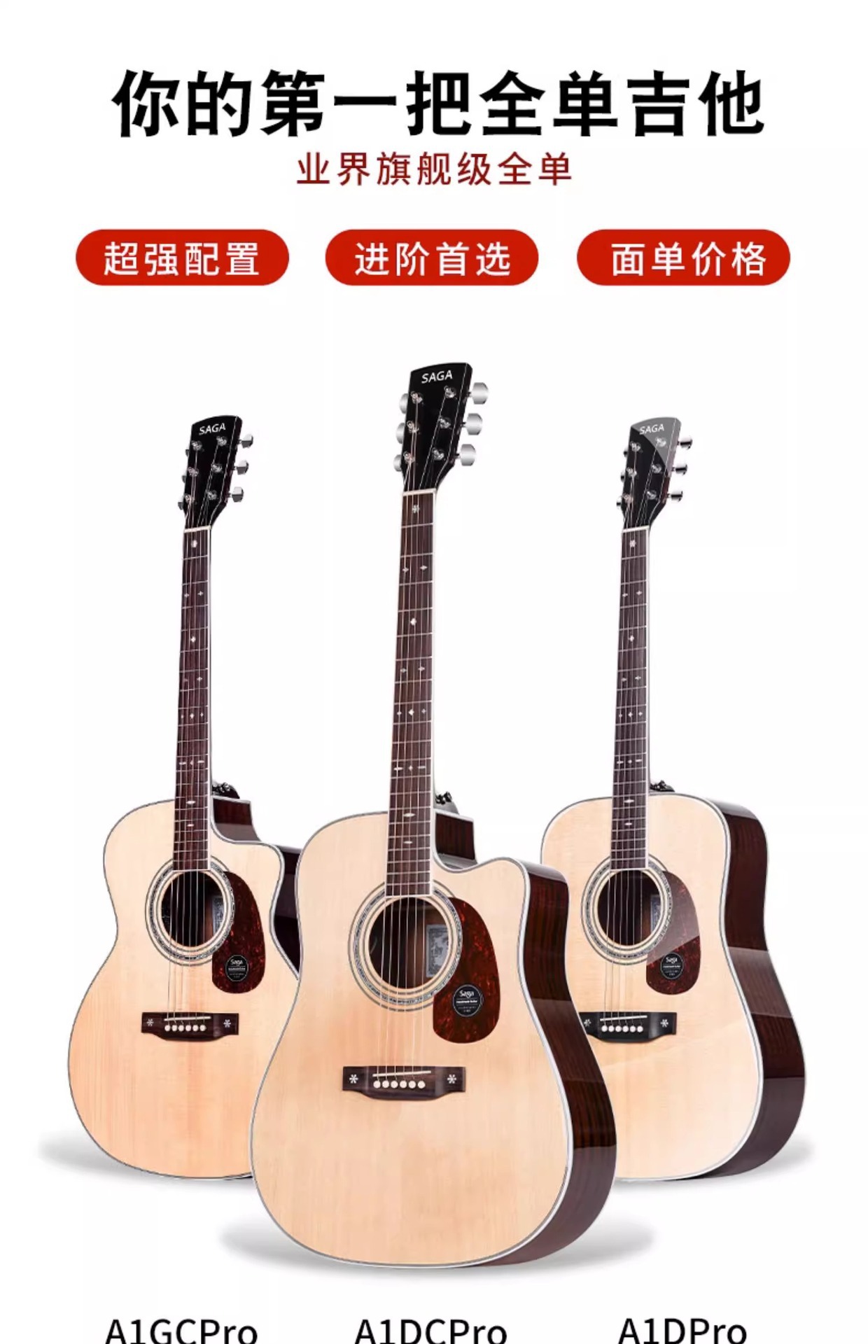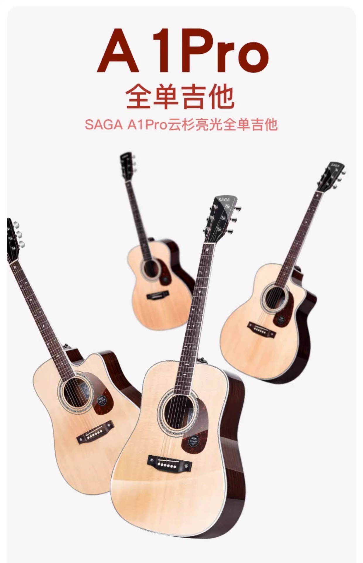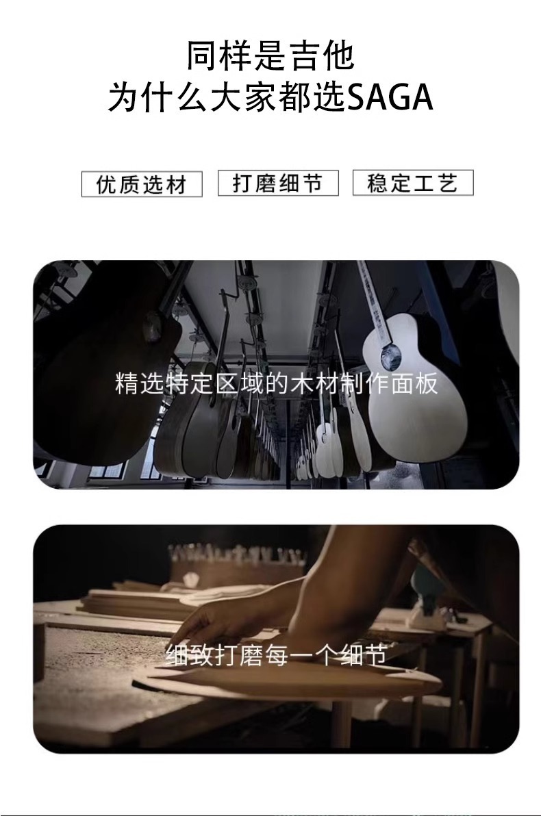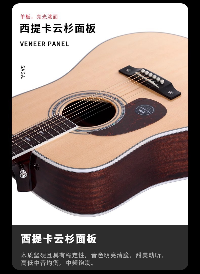 Saga A1pro フル単板ギター 41inch フォークエレクトリックボックスギター初心者エントリーレベル男性と女性フィンガースタイルノッチ