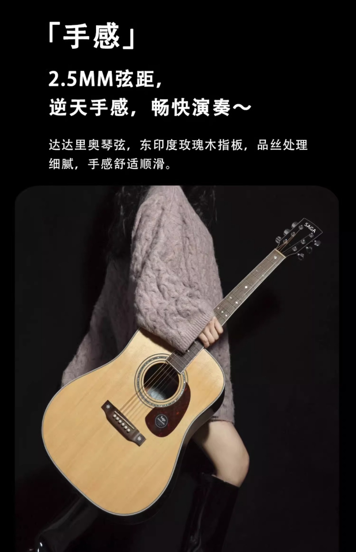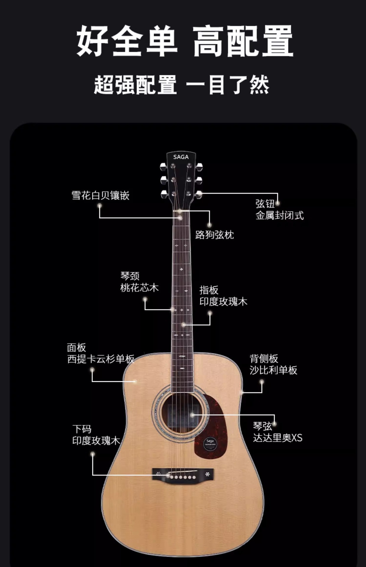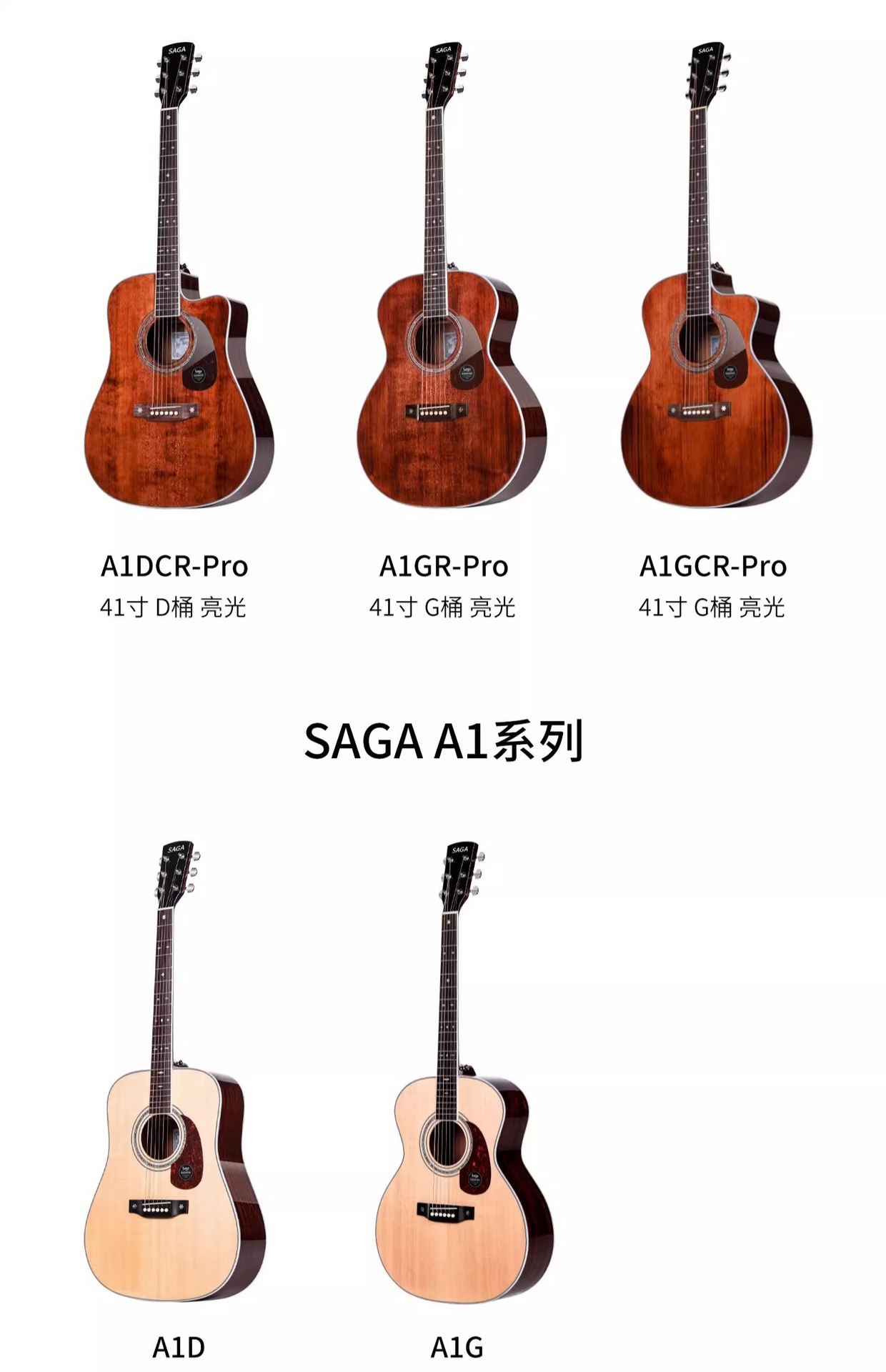 Saga A1pro フル単板ギター 41inch フォークエレクトリックボックスギター初心者エントリーレベル男性と女性フィンガースタイルノッチ