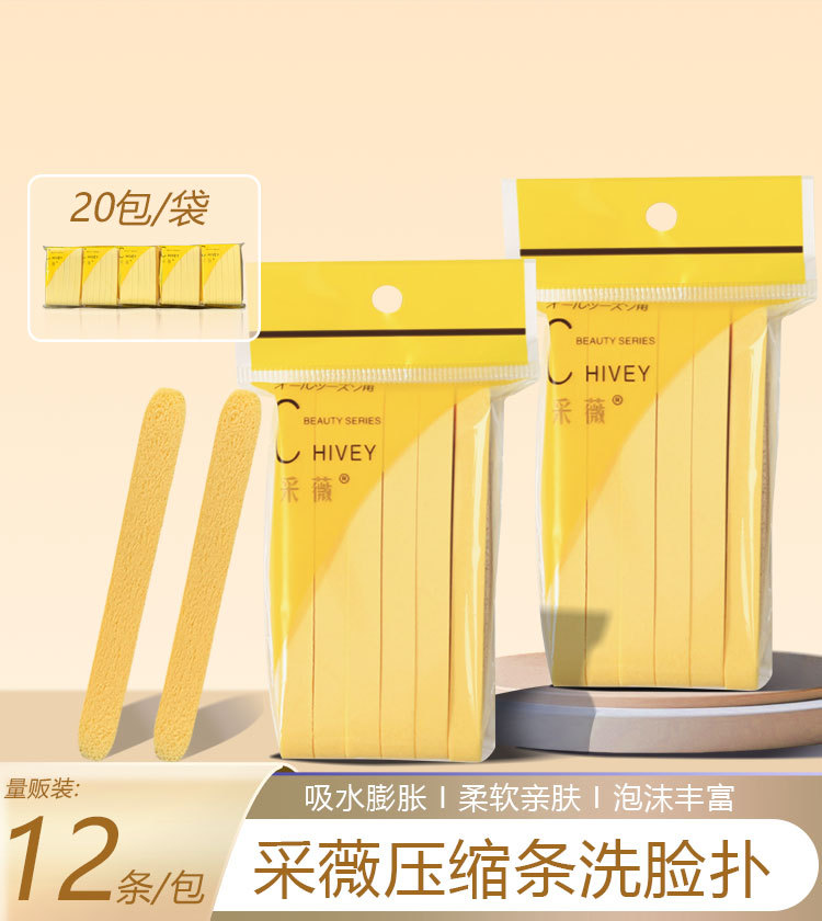 压缩条面扑12条洗脸扑便携式泡水变大海绵粉扑压缩条洗脸扑批发