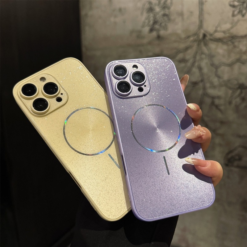 アイスクリスタルグリッターは、Apple 16 細いサークル磁気電話ケース iPhone 15 promax レンズホルダー CD パターンに適しています。