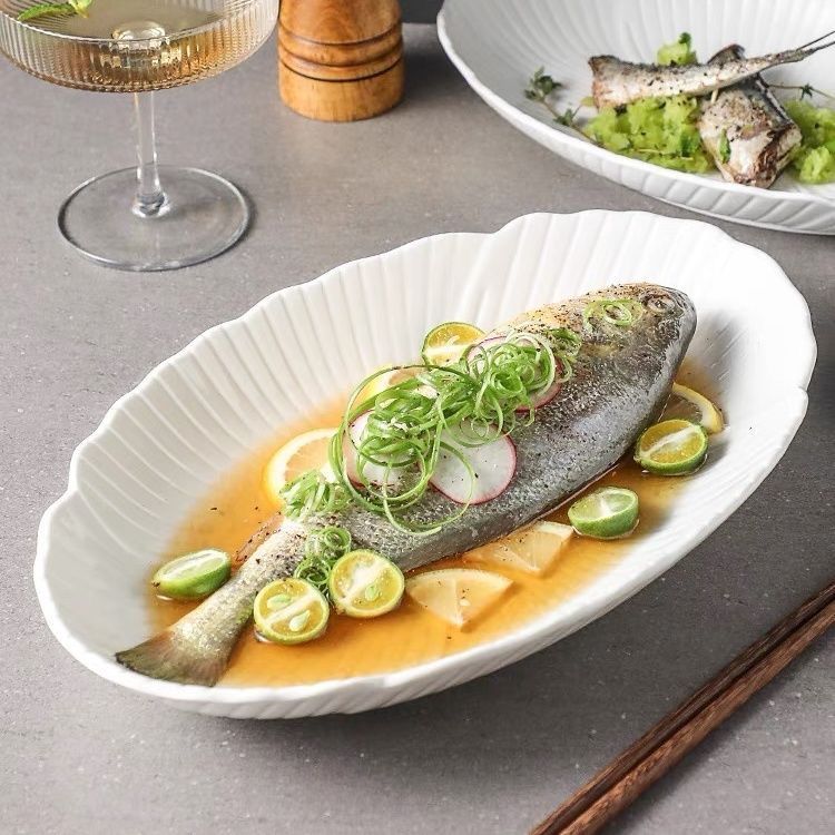 蒸鱼盘家用2025新款轻奢感网红椭圆形深创意陶瓷盘子跨境工厂直销