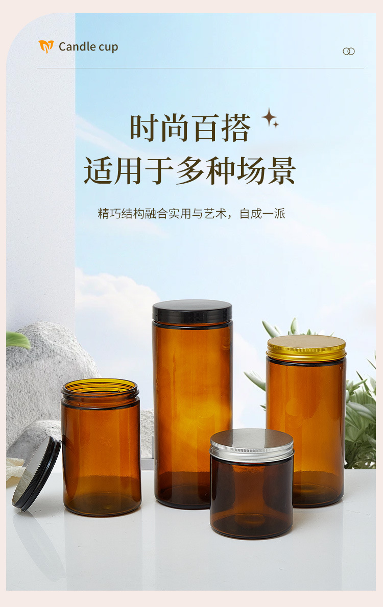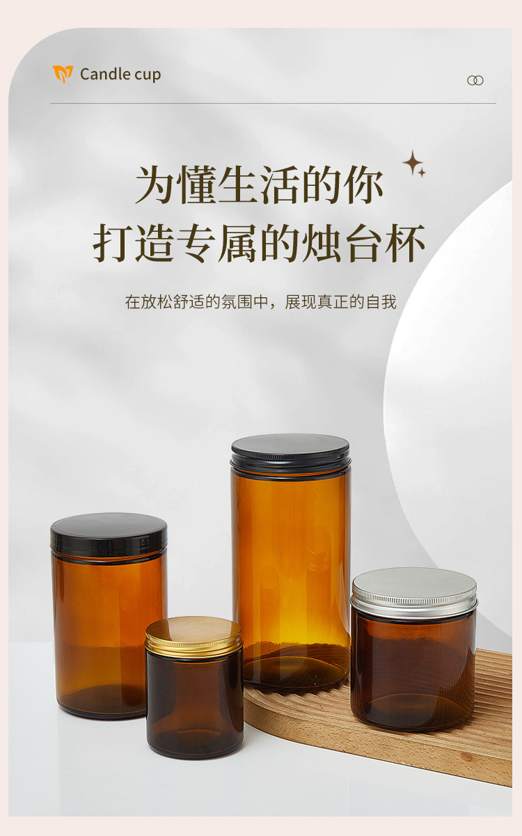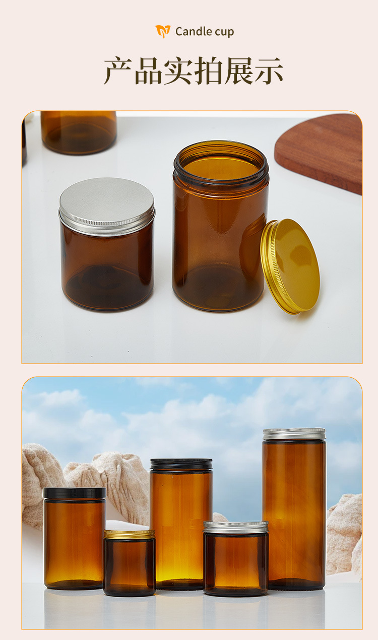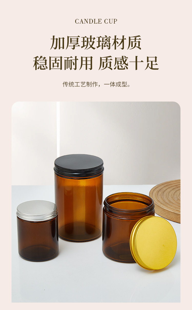 卸売茶色のガラスの大きな口キャンドルカップ燭台カップアルミ蓋瓶茶色のガラスのキャンドル瓶アロマキャンドルカップ