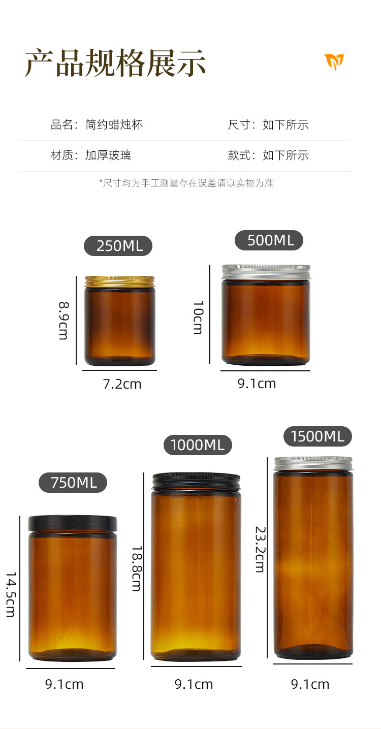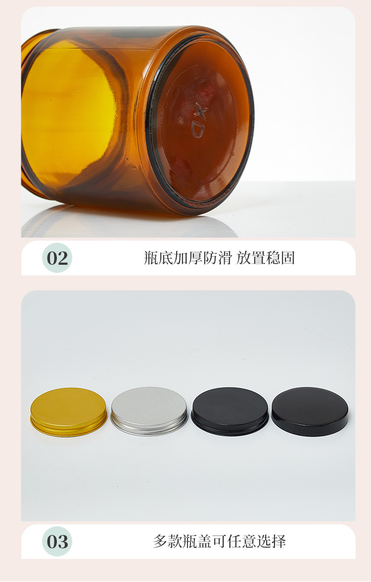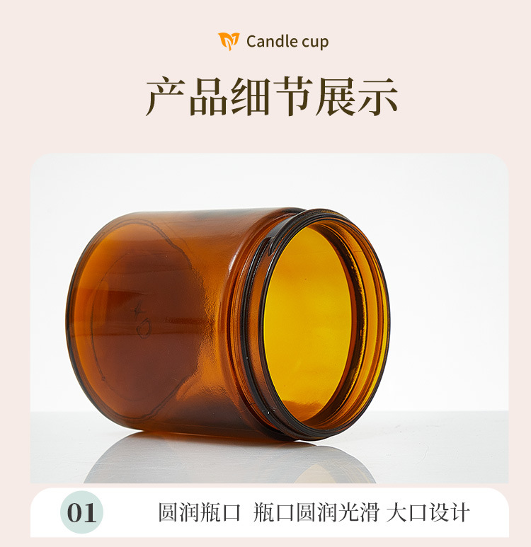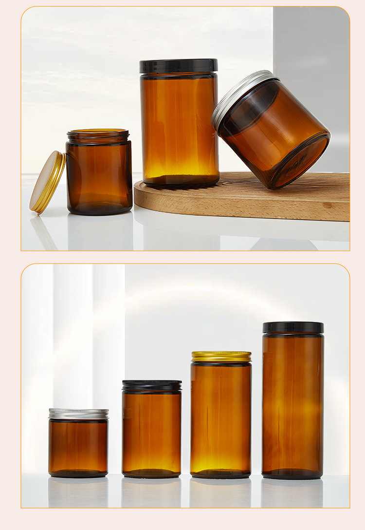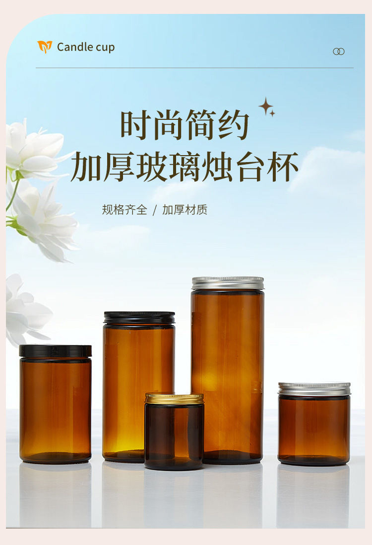 卸売茶色のガラスの大きな口キャンドルカップ燭台カップアルミ蓋瓶茶色のガラスのキャンドル瓶アロマキャンドルカップ