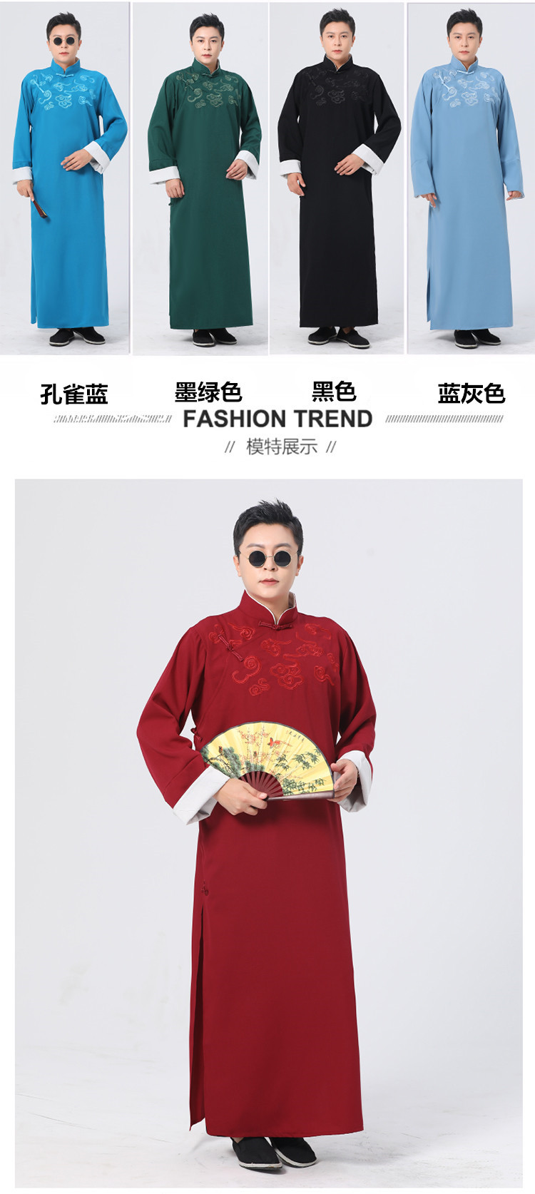 男性用サウンドアクトスーツロングジャケット、中華民国コート、中国風ベストマンスーツ、刺繍入り年次総会パフォーマンススーツ、ロングジャケット