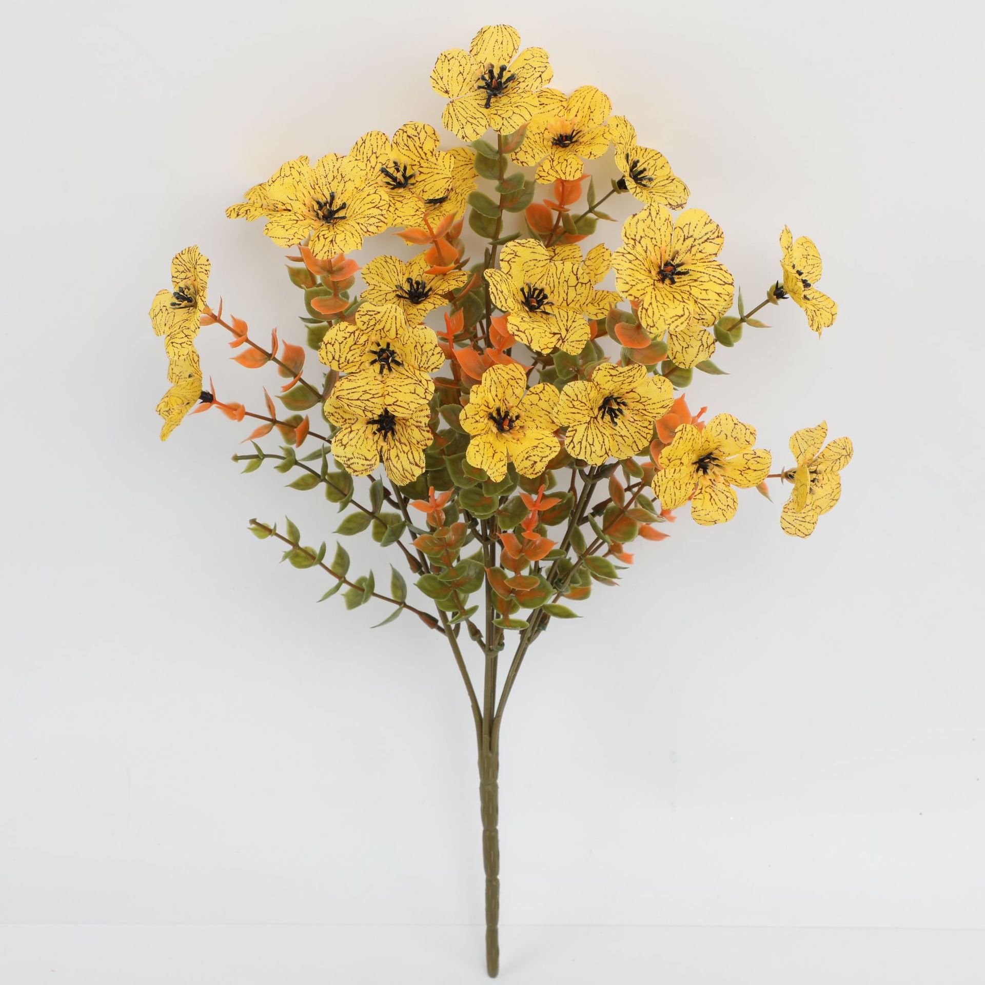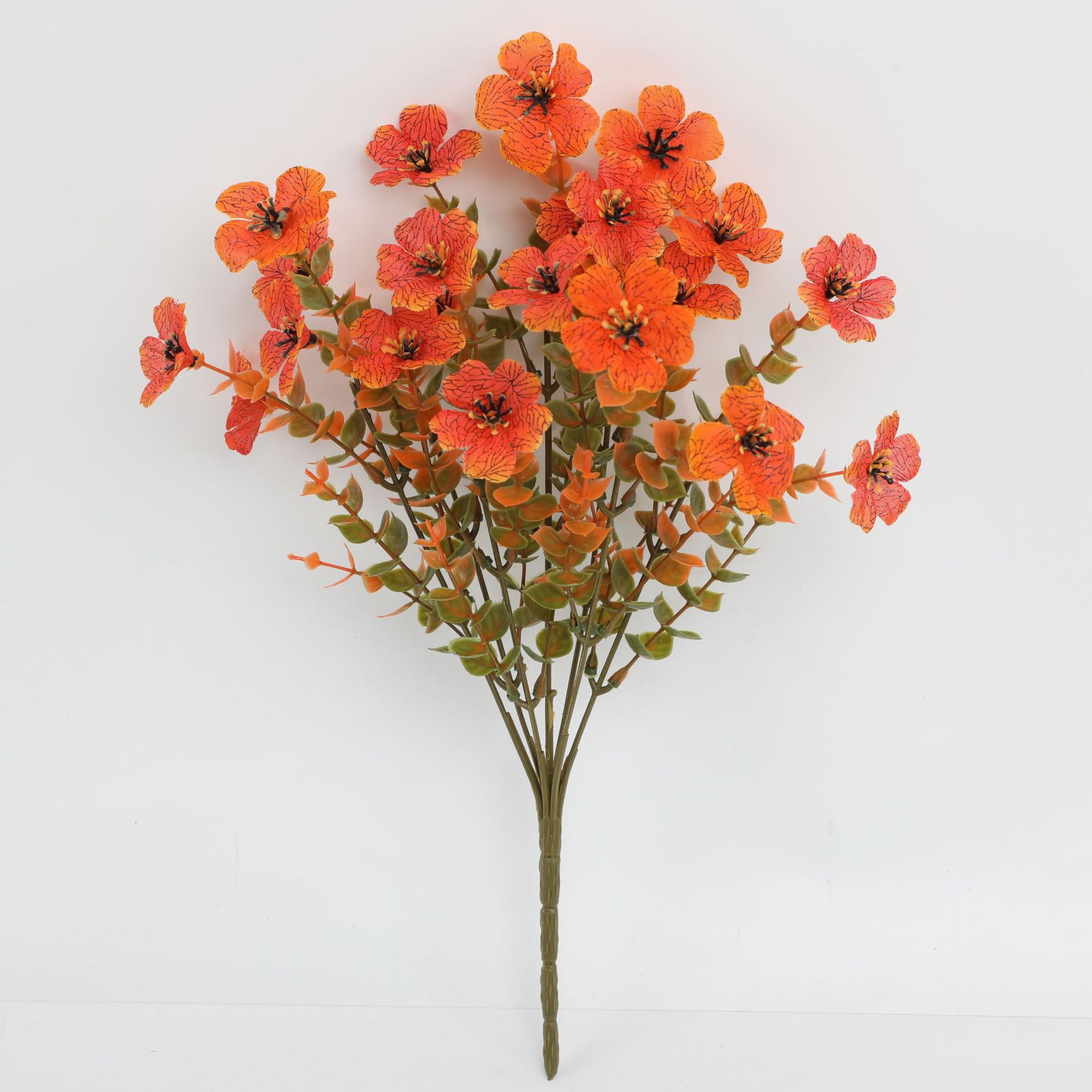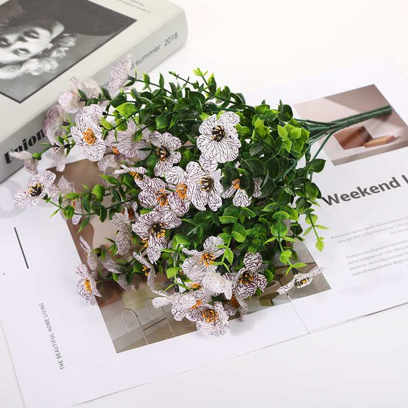 跨境亚马逊仿真花假花7叉尤加利紫罗兰小把束绿植塑料花家居庭院