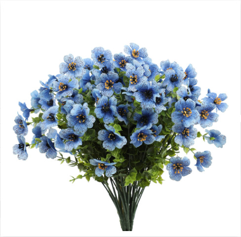 跨境亚马逊仿真花7头小把花束紫罗兰仿真高品质绢花户外家居庭院
