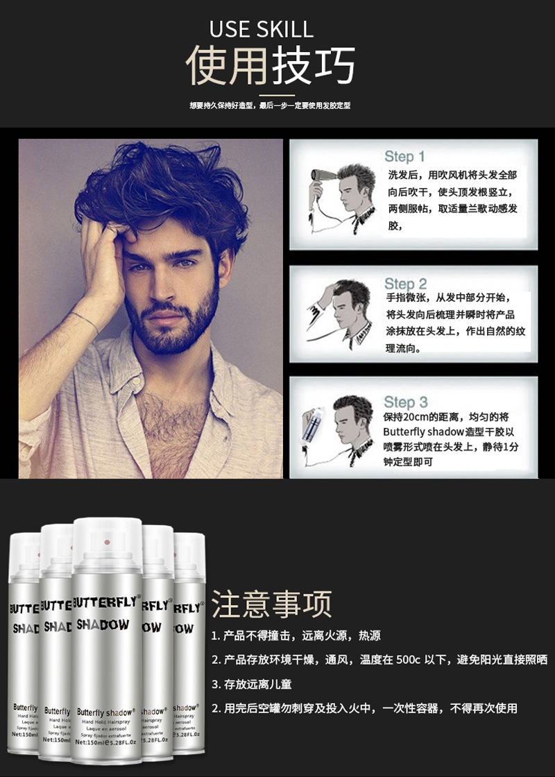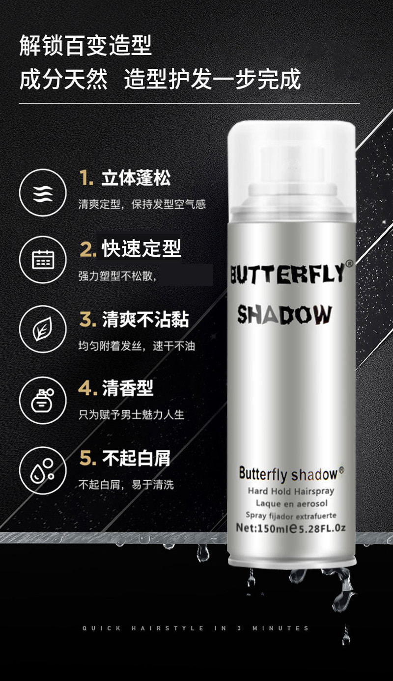 butterfly造型发胶蝶伊清影定型喷雾600ml150ml便携装干胶批发