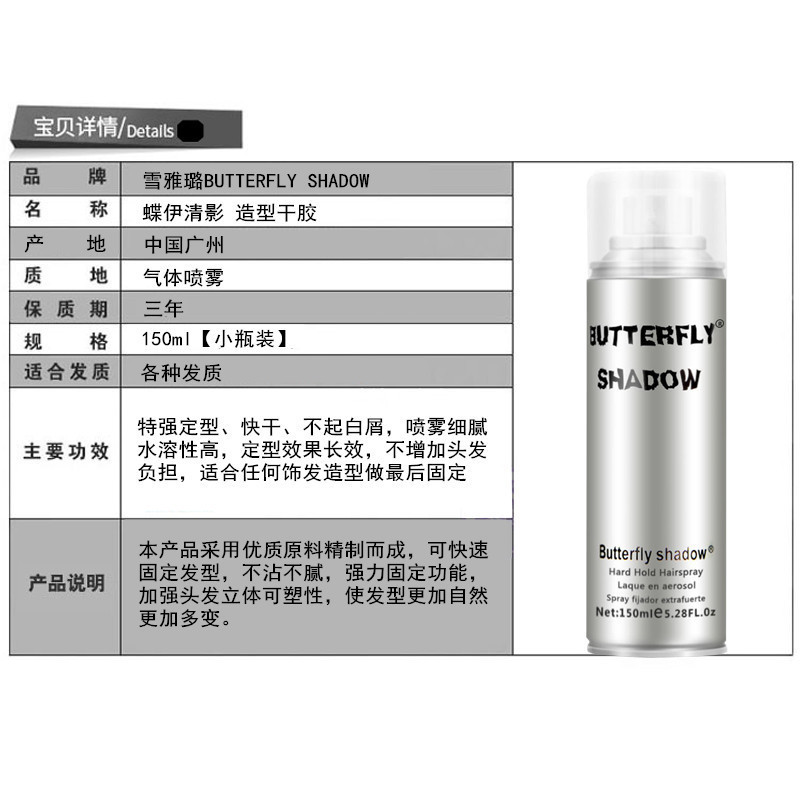 バタフライシャドウ蝶伊清影特硬ドライスプレーヘアスタイリングジェル特硬定型