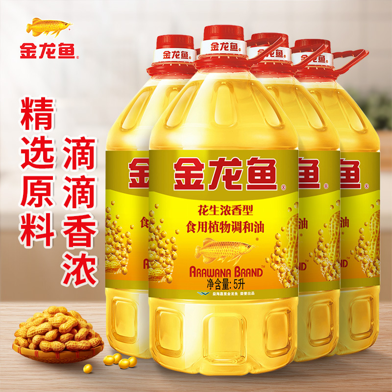 升食用油家用调和油植物花生金龙鱼桶装炒菜5升升油浓香型4