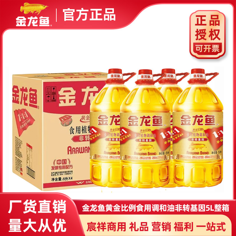 金龍魚食用油黄金比食用調合油非遺伝子組換え5lフルケース家庭用商用卸売り