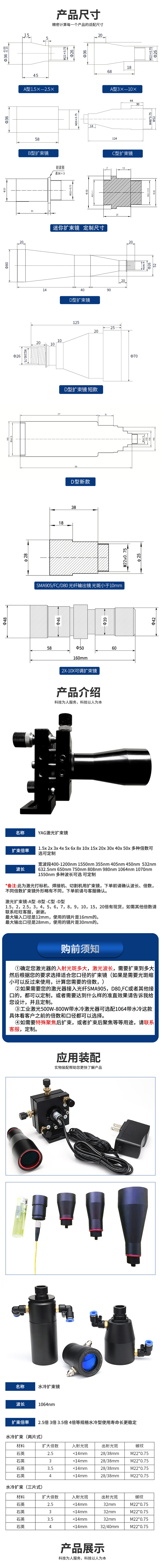 Yagレーザービーム拡束鏡-a型(2/2.5/3/4/6/7/8/10倍にスポットがある) 1064nm