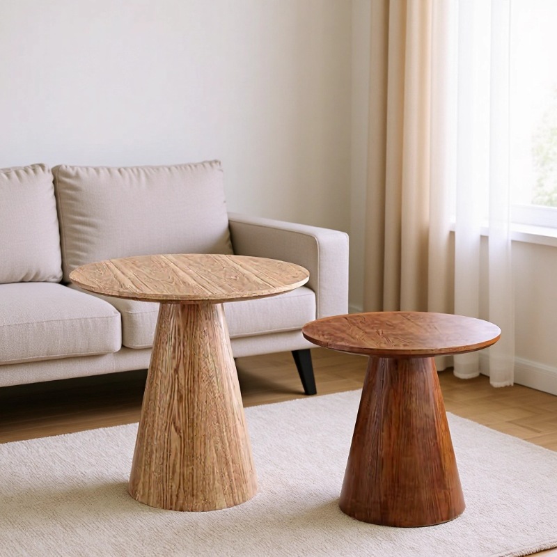 丸いティーテーブル、デザイナーによる小型リビングルーム用、無垢材、民宿、ホテル、シンプル、北欧風、ミニマリスト、完全無垢材