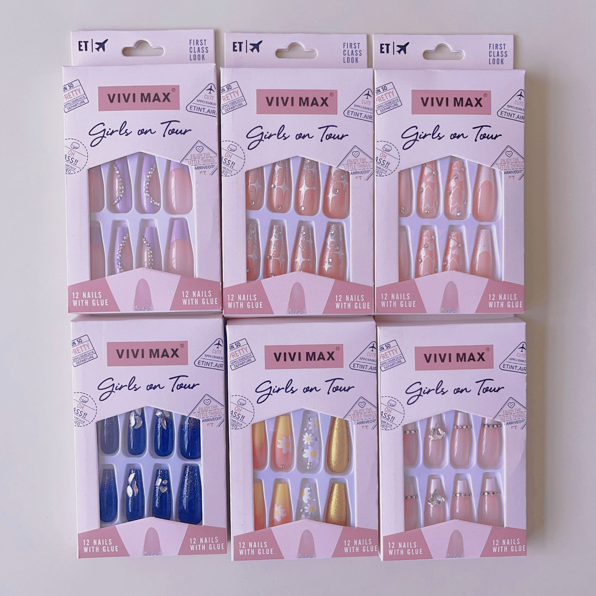 外国貿易輸出マニキュアロングバレエネイル 12 個箱入りマルチカラーボックス爆発ダイヤモンドマニキュアウェアラブルネイル
