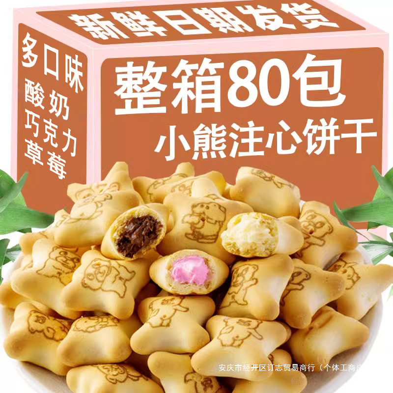 クマのビスケット小包装チョコレートサンドイッチビスケットマルチフレーバーカジュアル子供用スナック卸売全箱