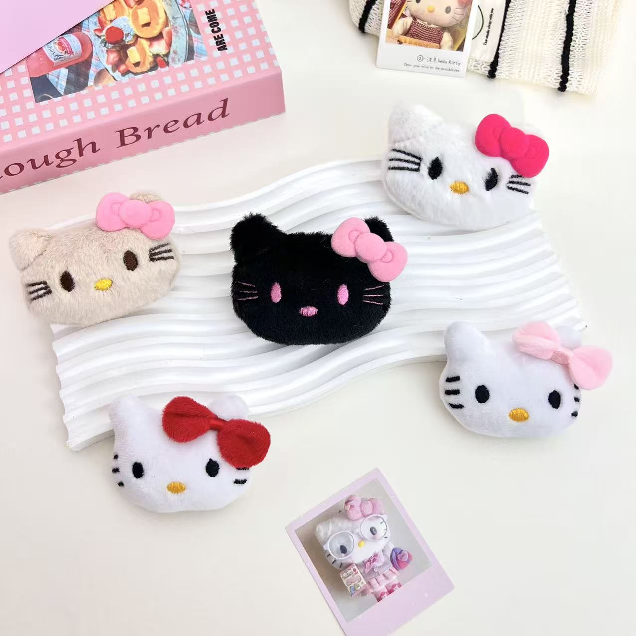 黑皮kitty猫蝴蝶结公仔胸针卡通毛绒kt甜酷辣妹风diy发圈鞋服配饰