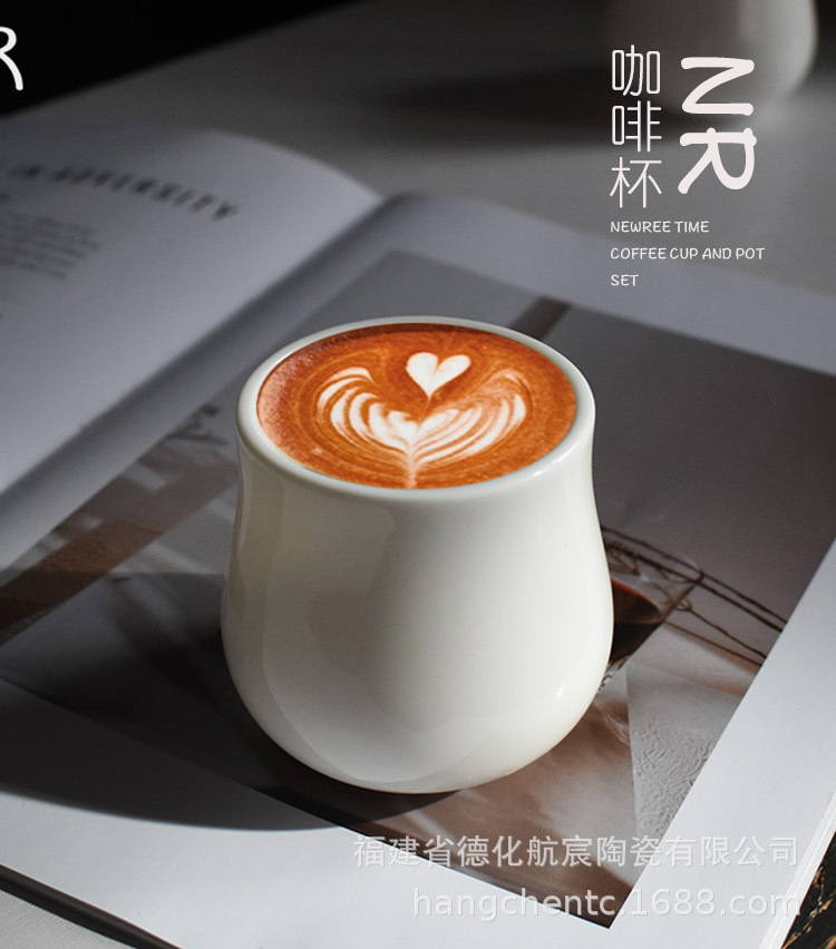 跨境陶瓷手握咖啡杯家用葫芦杯可乐杯拿铁拉花白瓷下午茶杯碟套装