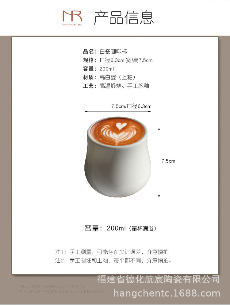 クロスボーダー白磁コーヒーカップ 200 ミリリットルアメリカンエスプレッソカフェデザートテイスティングカップ大容量マスターカップ