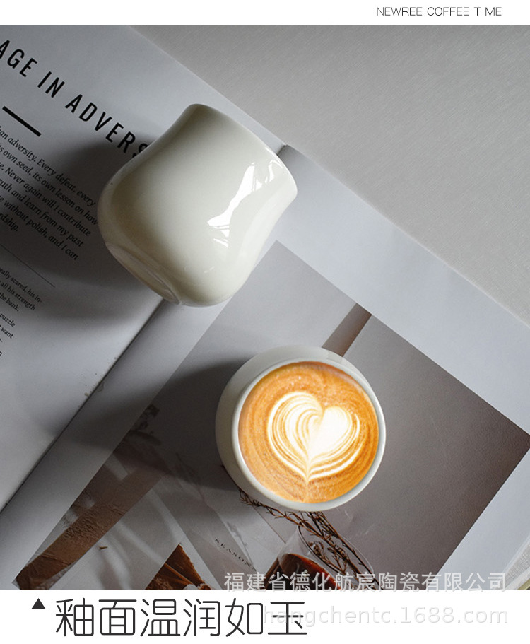 【オフホワイト】ひょうたんラテカップ 徳化白磁コーヒーカップ セラミックマグ ティードリンクカップ 270mlカップ