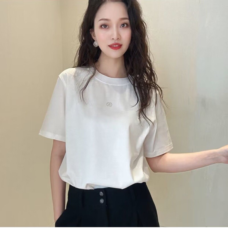 Gejia モールの同じスタイルの女性の 2025 夏バニー刺繍アイスシルク半袖 T シャツ女性のためのルーズで多用途
