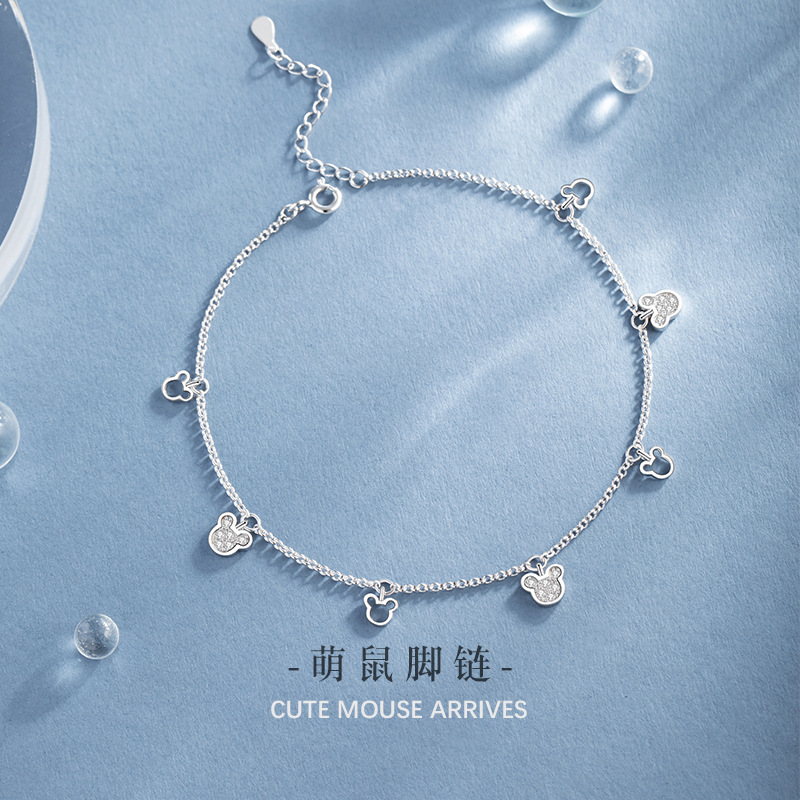萌鼠纯银925脚链女小众设计轻奢款锆石生肖足链ins风小老鼠脚饰