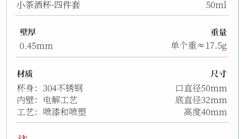 戸外キャンプステンレスコーヒーカップ小杯キャンプ水カップ茶カップ携帯50ml広口積層可能