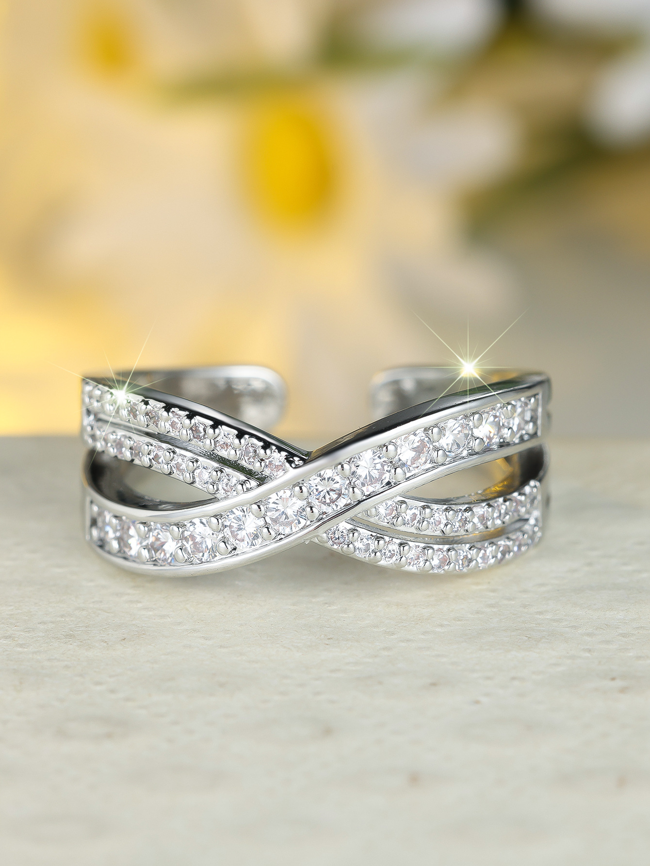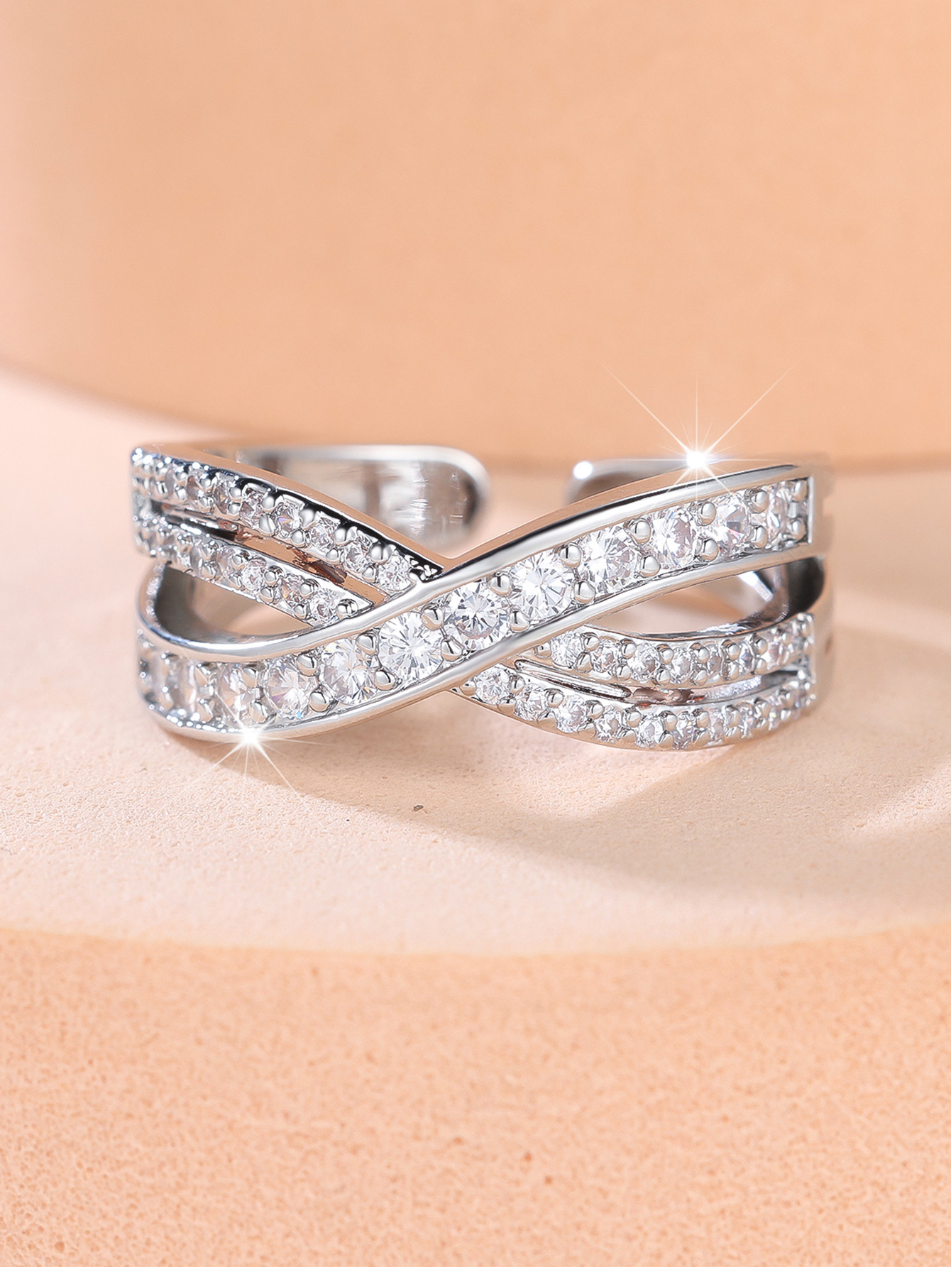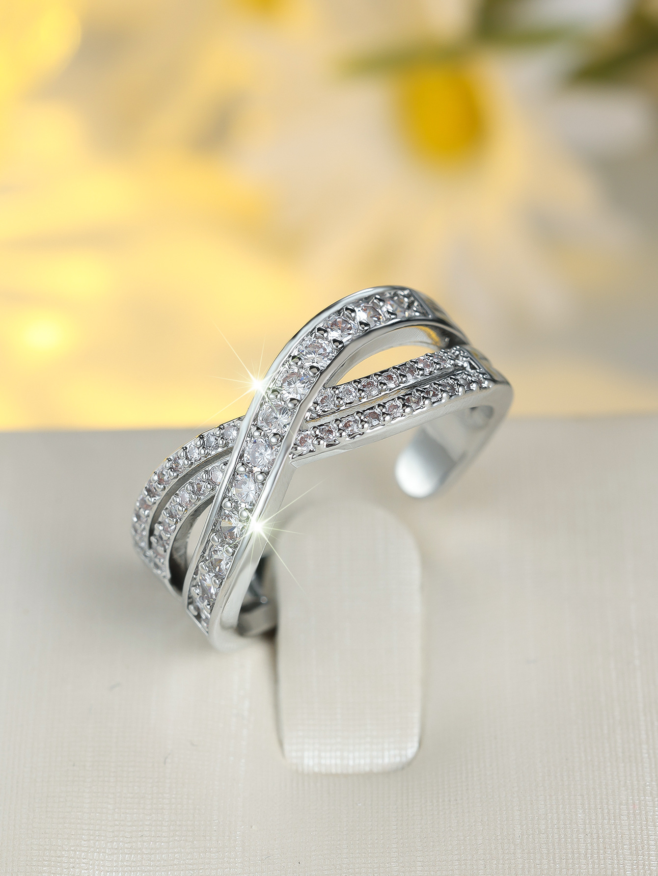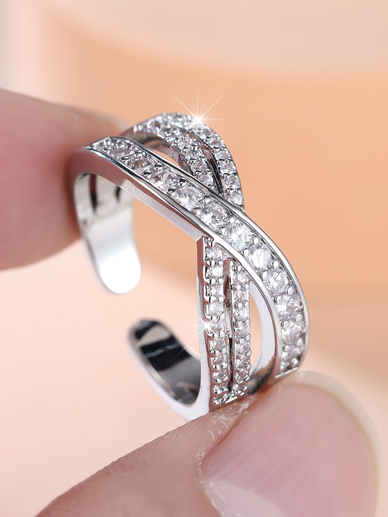 ヨーロッパとアメリカのラウンドホワイトダイヤモンドクロスオープンリングコールドスタイルニッチシンプルファッション個性スーパーフラッシュオープンリング