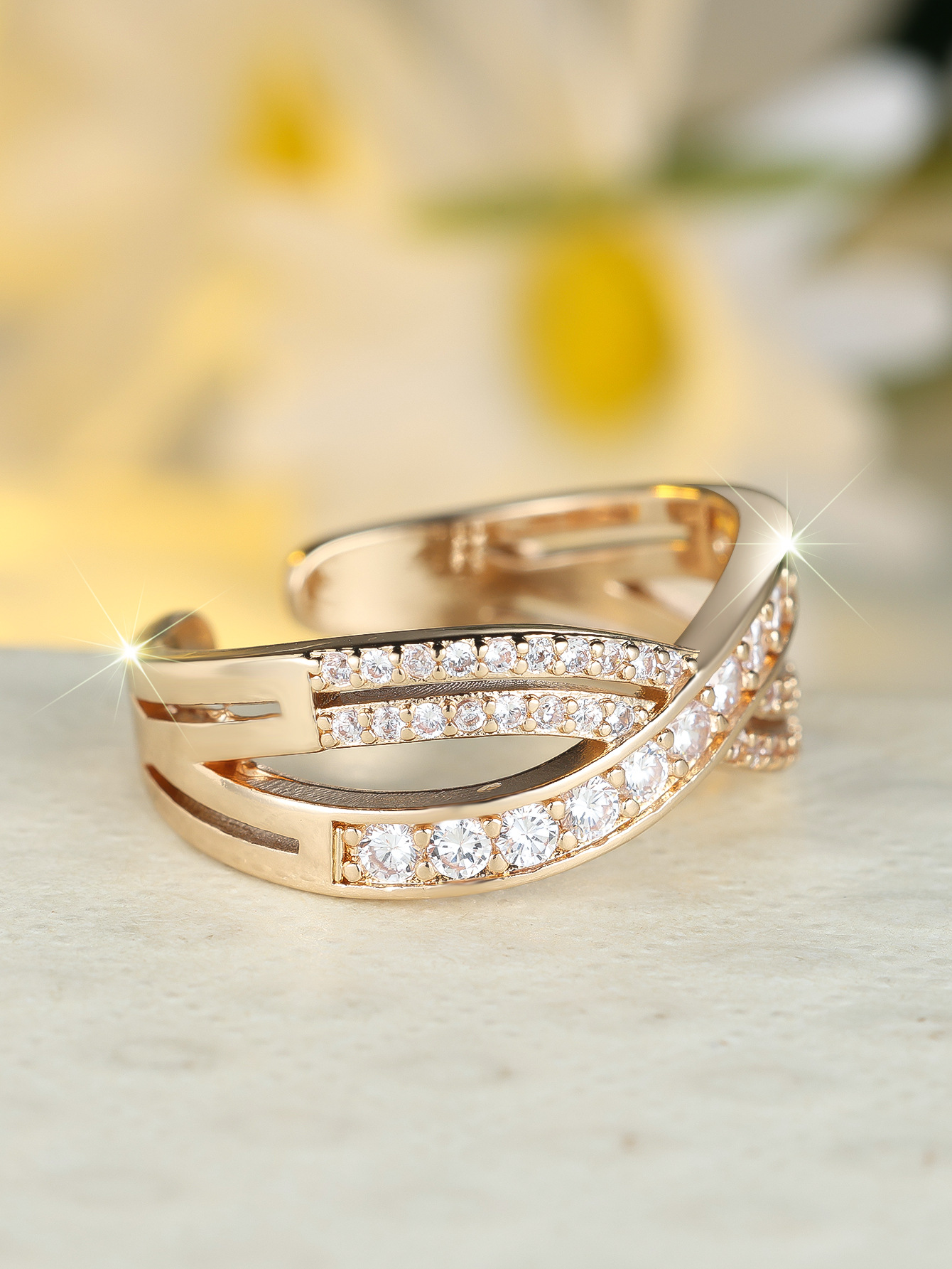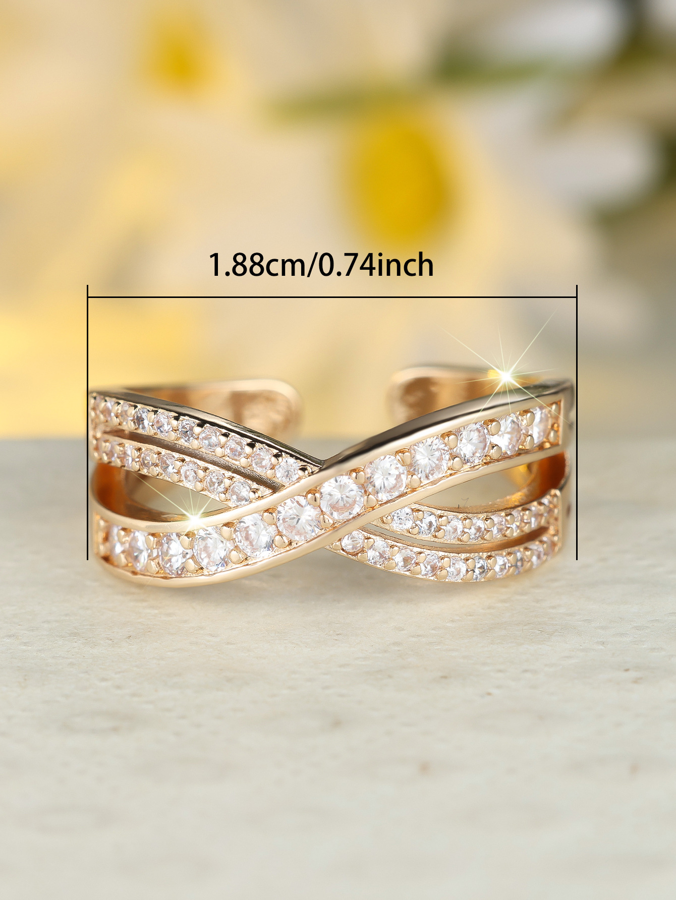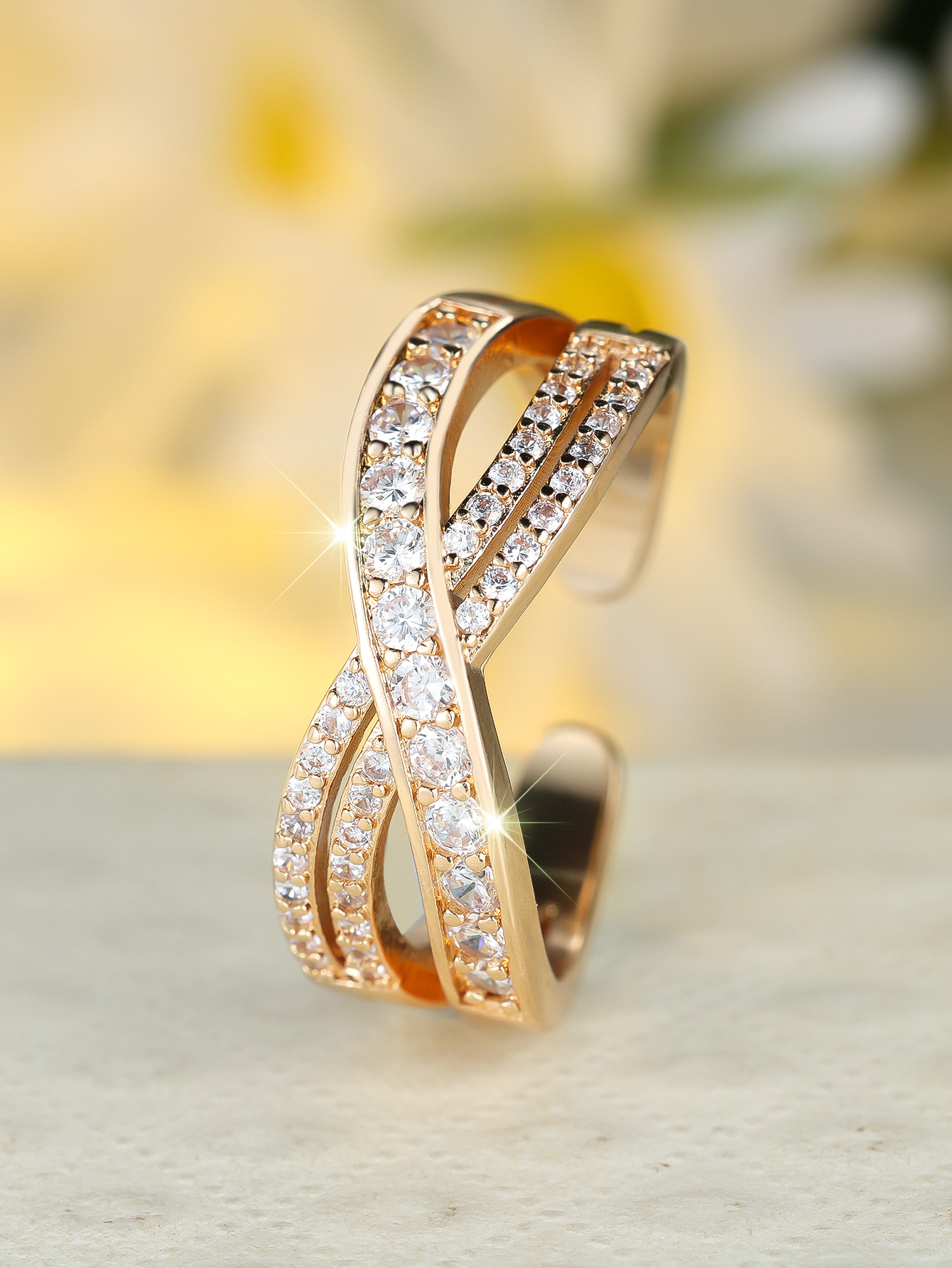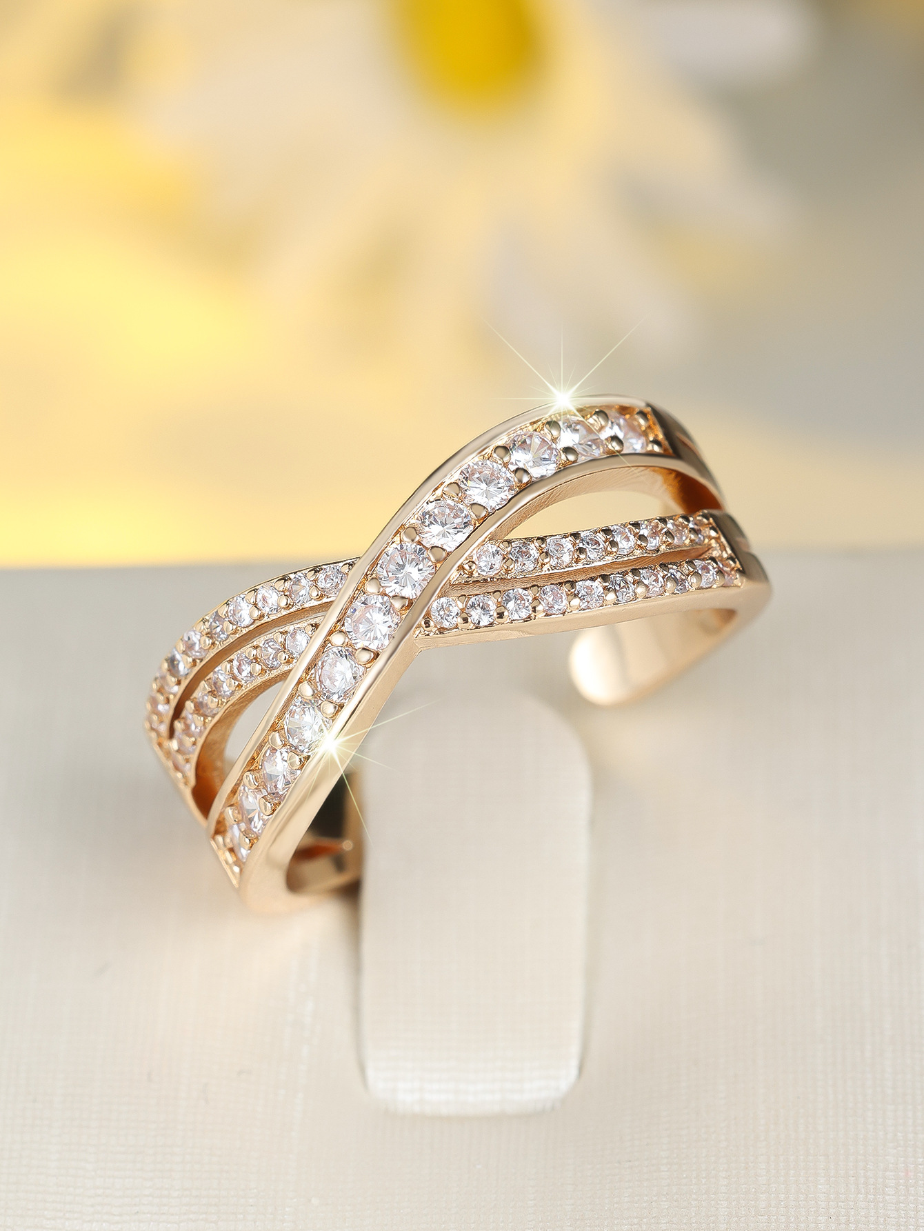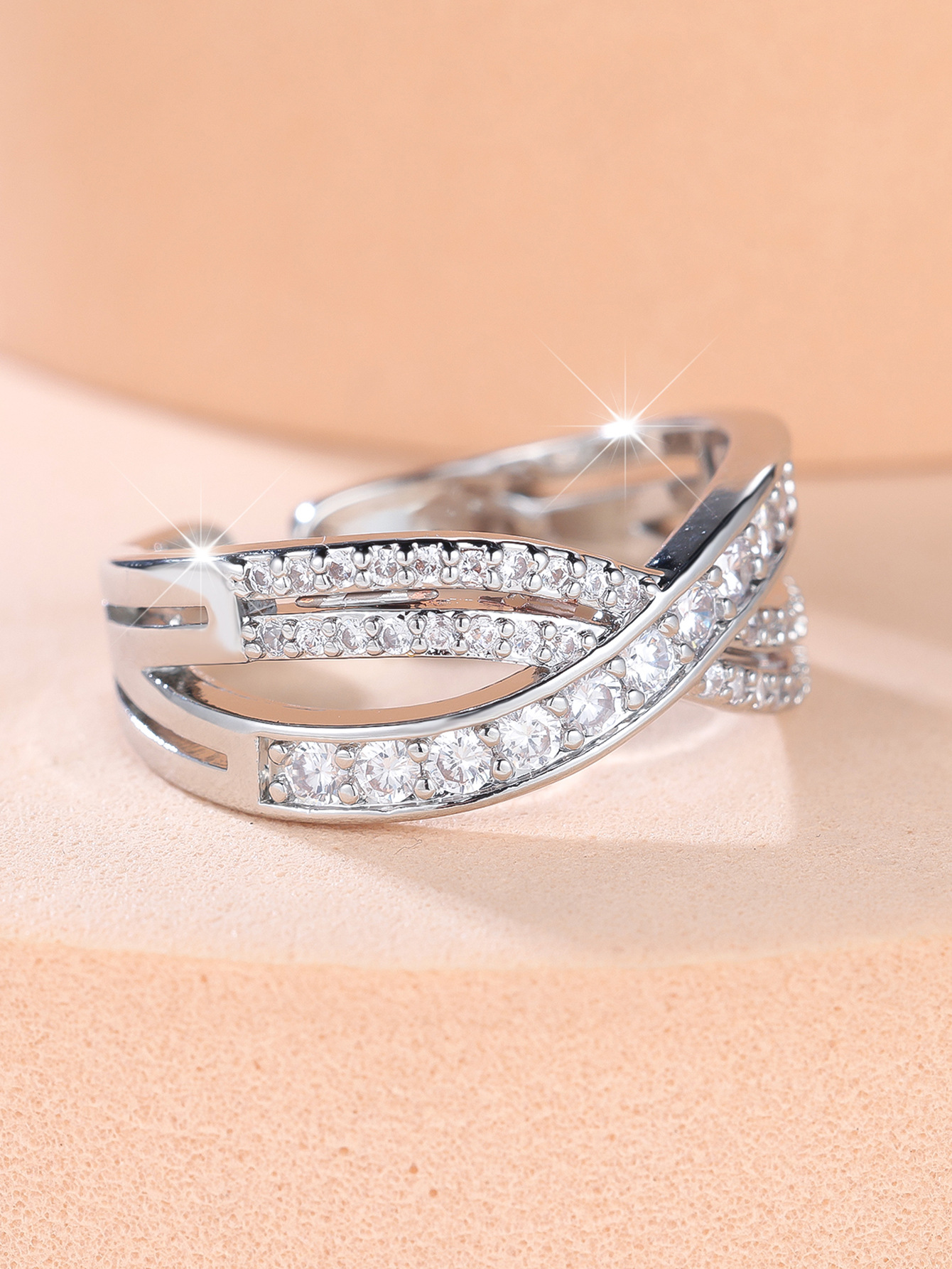 ヨーロッパとアメリカのラウンドホワイトダイヤモンドクロスオープンリングコールドスタイルニッチシンプルファッション個性スーパーフラッシュオープンリング