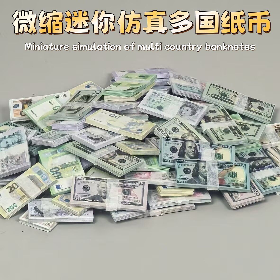微缩迷你钱钞票道具纸币美元欧元英镑小钞票仿真模型娃娃屋配件