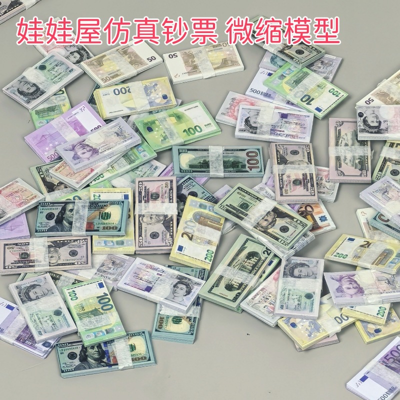 微缩迷你钱钞票道具仿真模型娃娃屋配件纸币美元欧元英镑小钞票