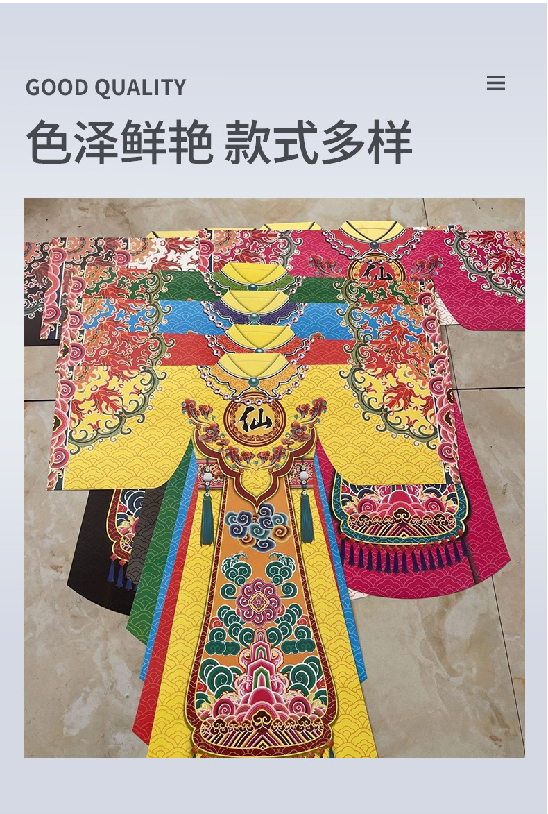 仙紙衣、仙袍、切り紙衣、紙仙服、神服、三月三祭り、卸売、工場直販、仙服、仏教礼拝用