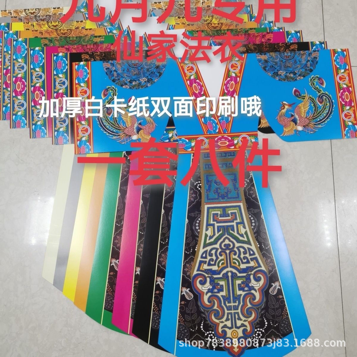 一套8件仙家新款法衣双面印刷三月六月六九月九仙衣衣服仙袍硬卡