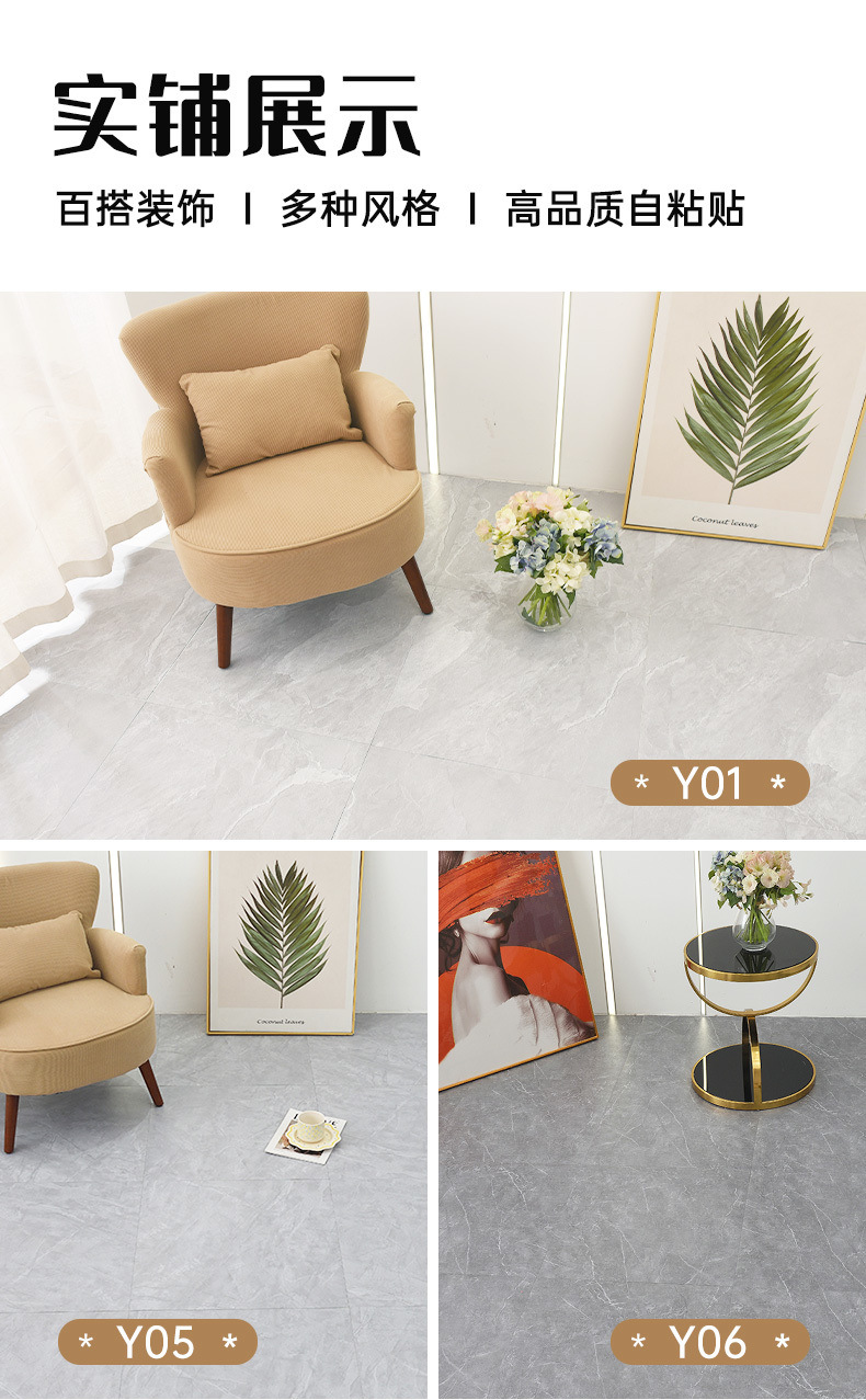 床ステッカー自己粘着床模造タイル光沢のある PVC プラスチック床ステッカーセメント床家庭用床革卸売